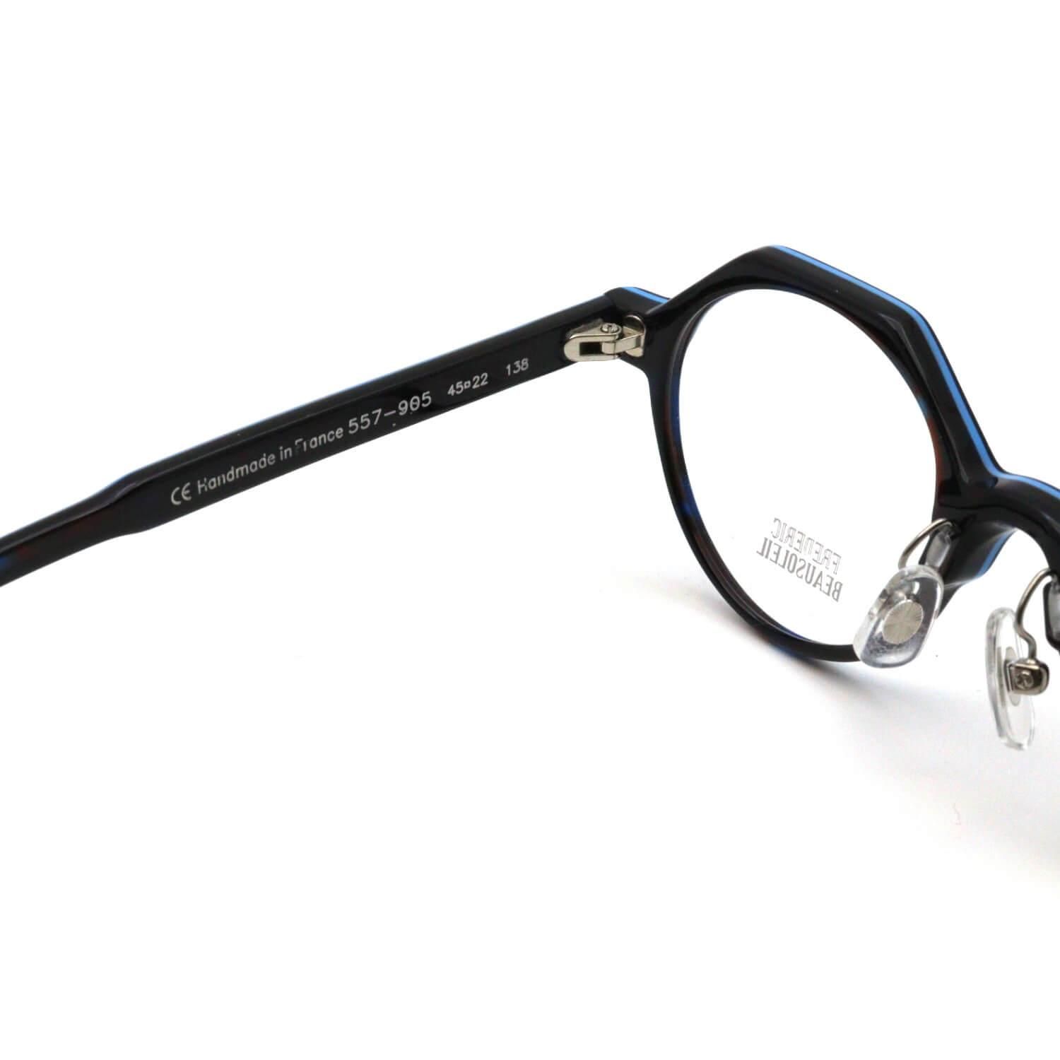 【O/557】は、クラシックなクラウンパント型を特殊なグランインダーで切削。3層の素材を効果的に魅せる造りが特徴的なモデルです。普通のメガネに物足りなさを感じている方には時におすすめの一本です。