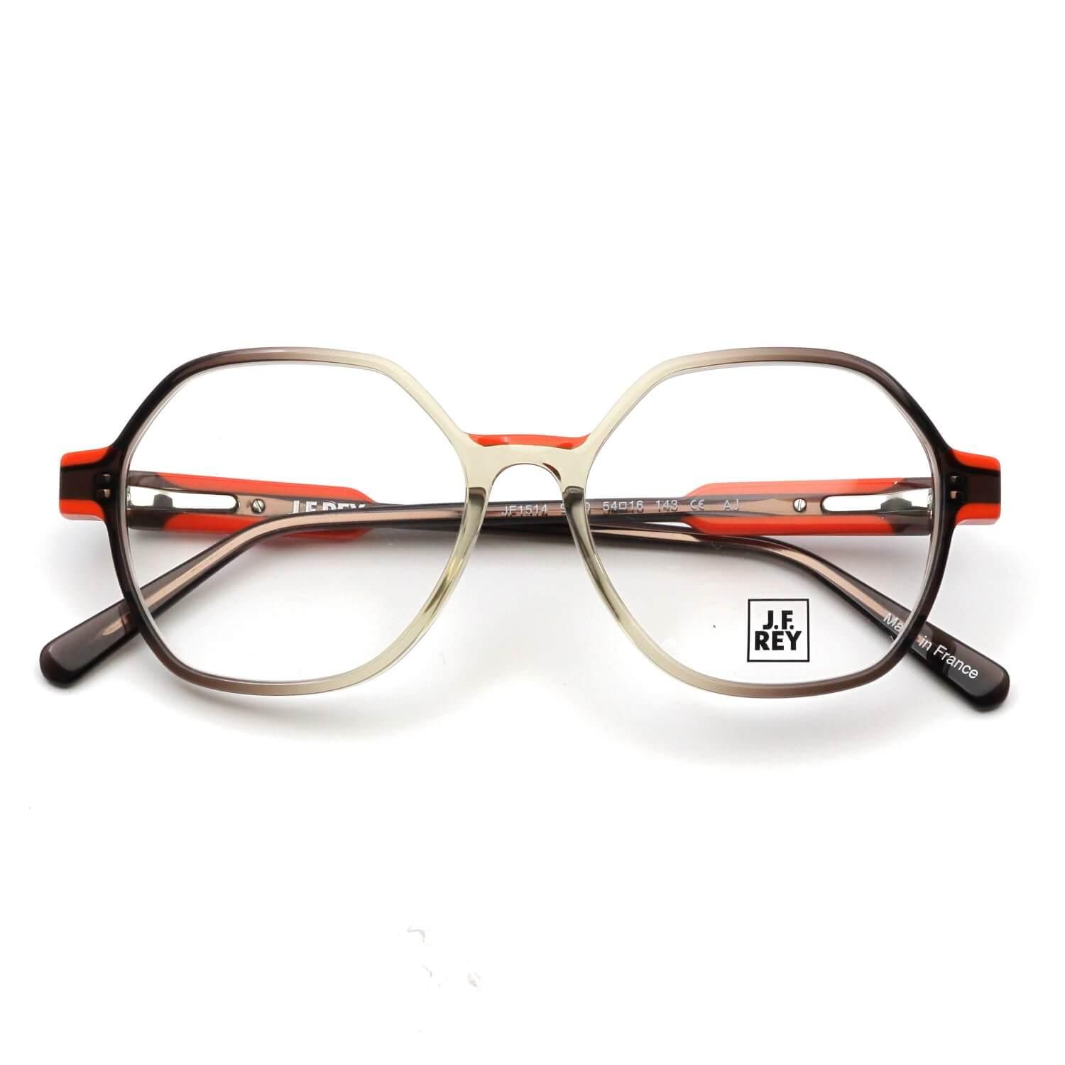 【JF1514】は、フレームの縦幅がしっかりあるオーバーサイズのモデル。6角形の近未来的デザインが魅力です。男性はもちろん、オーバーサイズで掛けたい女性にもおすすめ。大ぶりのサングラスとして使用するのもおしゃれです。