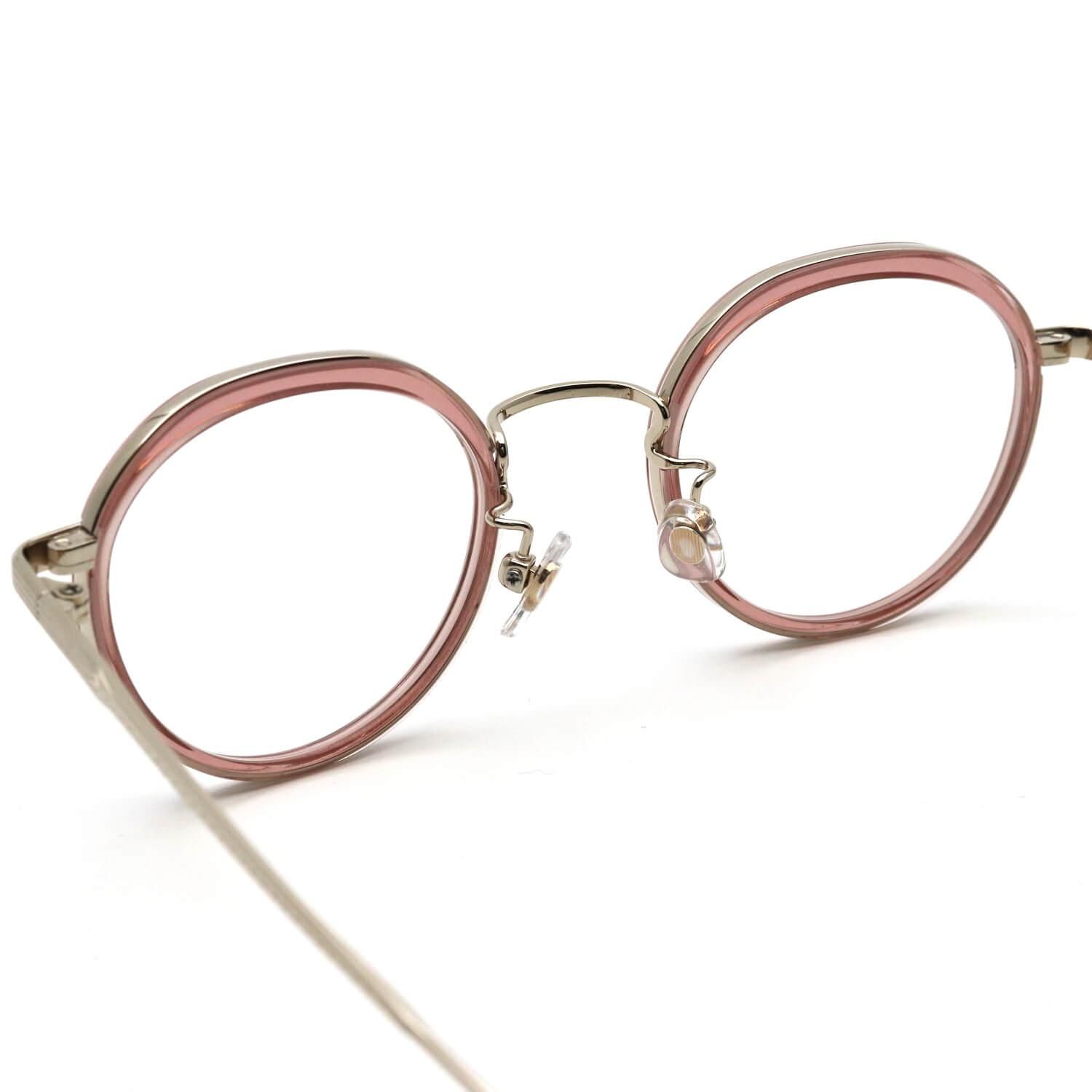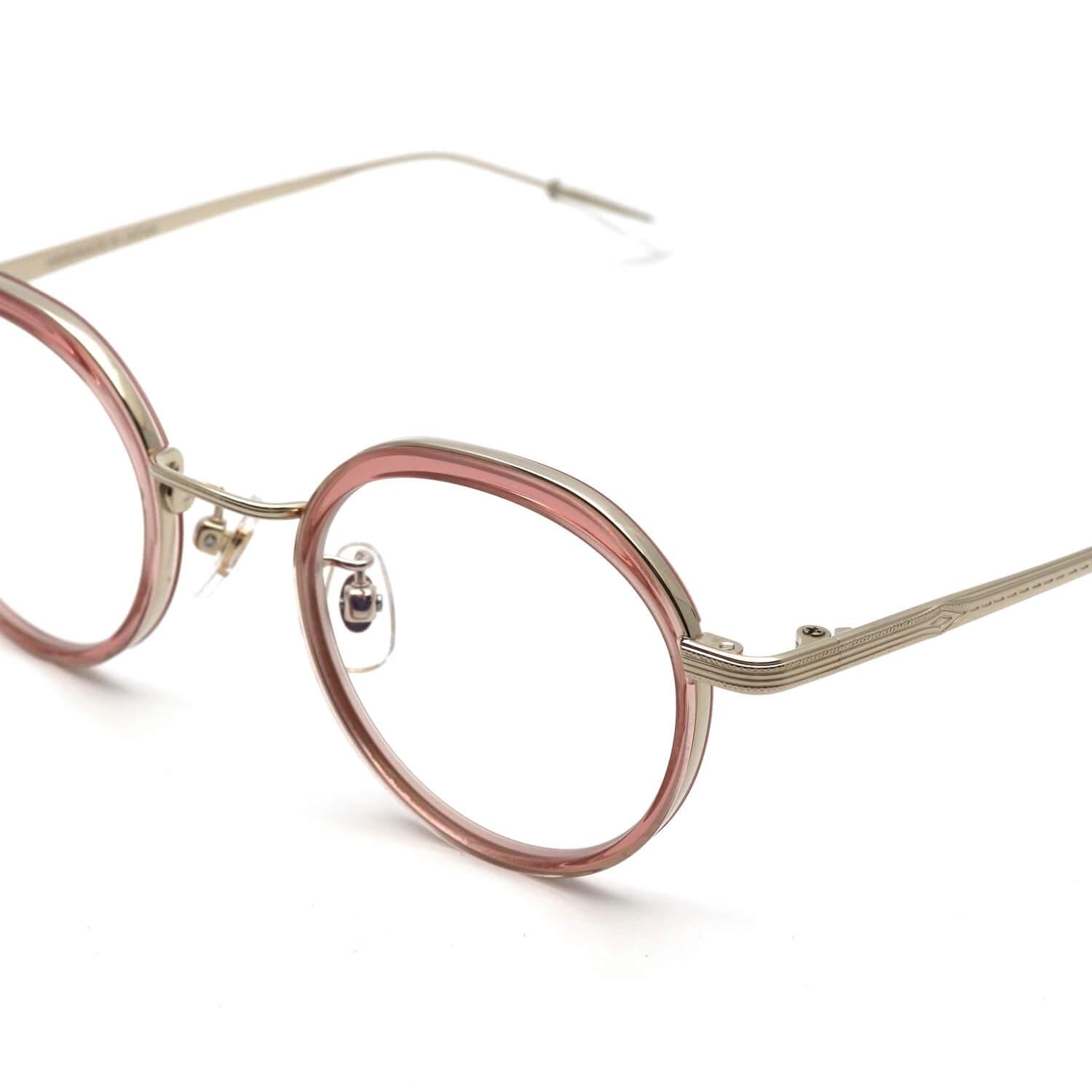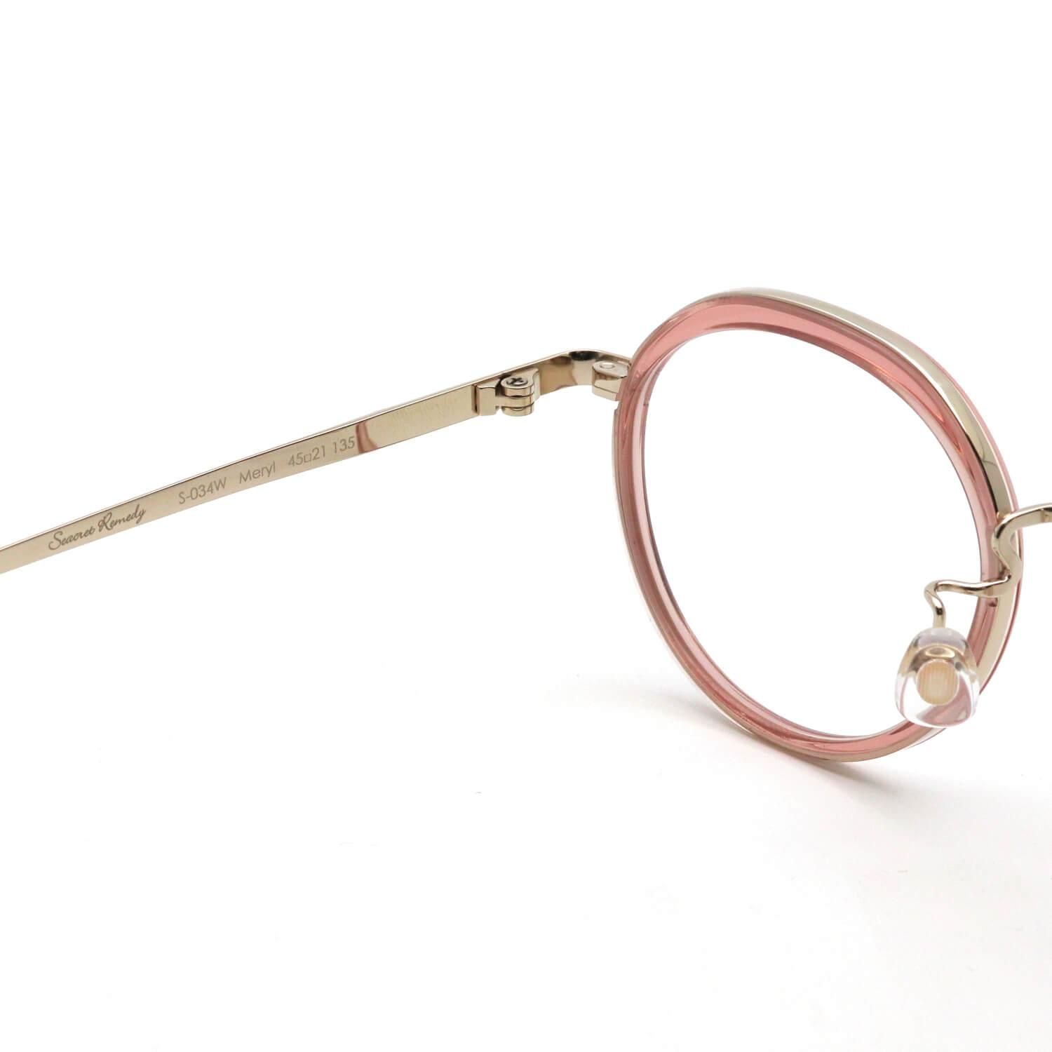 シークレットレメディの中で高い人気を誇るメタルフレーム【S-034】に、プラスチック素材を組み合わせてアップデートしたのが【S-034W(Meryl)】。クリアカラーのプラスチック生地を採用することで、クリーンでライトな印象に。全体的に丸みは残し、レンズ上部のみ直線を加えたクラウンパント型で、丸メガネに比べて顔なじみがよいのも利点です。