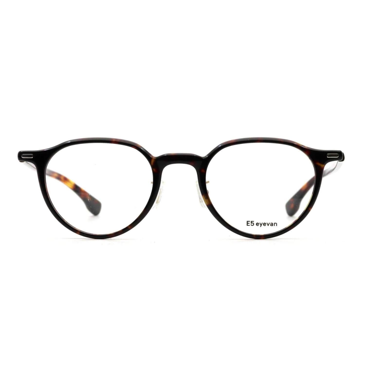 『E5 eyevan』待望の3ndコレクション【p10】は、顔なじみの良いクラウンパントシェイプ。 フロントに使用しているプラスチック生地は、高密度で変形が少なく、経年変化がしにくい「Highcount acetate」を使用。テンプルの特殊なL字型は、掛け心地の良さ・調整のしやすさを追求した結果生まれた形状。テンプルを太く長めに設計して肌に触れる面積を広くし、メガネの重心を後ろに持たせることで、鼻あてにかかる重みを軽減しています。