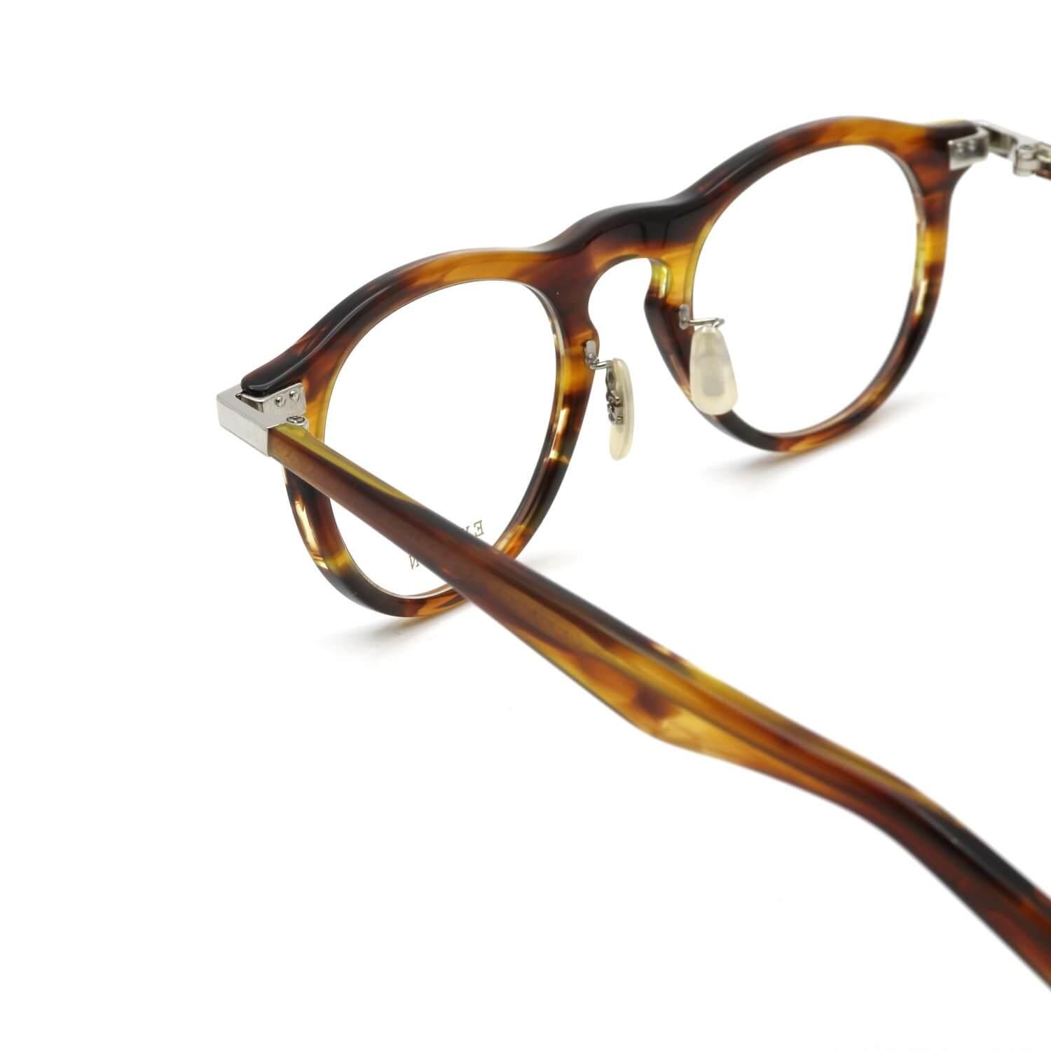 着想源は、1940年代にイギリスで作られたハンドメイドのプラスチックフレーム。テンプルは無駄のないスッキリとしたデザインで個性を出しています。