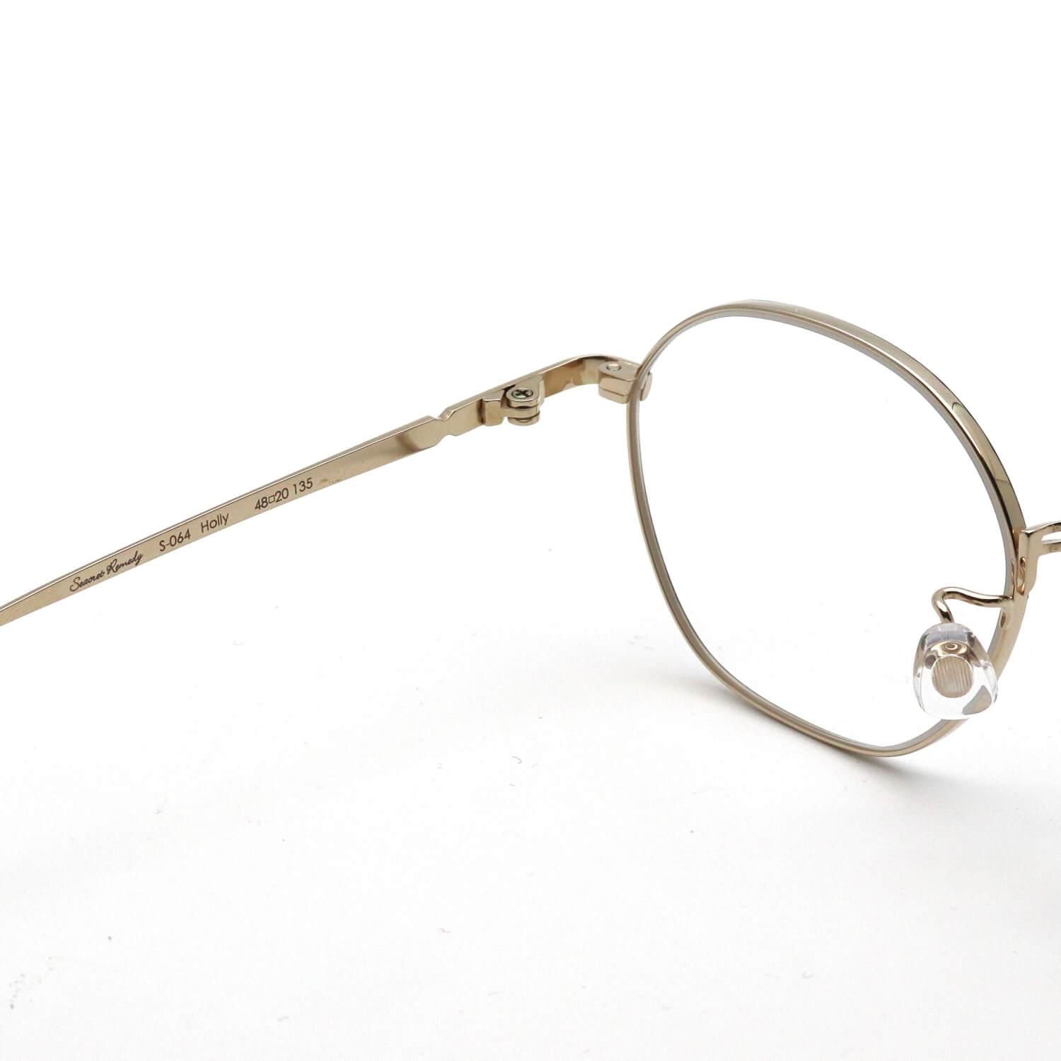 【S-064(Holly)】は、「ダブルミーニング(2つの意味がある)」をデザインに取り入れたモデル。二股に分かれたブリッジをよく見るとアシンメトリーなシルエットになっていて、まるで"人がブリッジをしている"よう。そんなくすっと笑みがこぼれる遊び心も感じさせるモデルです。