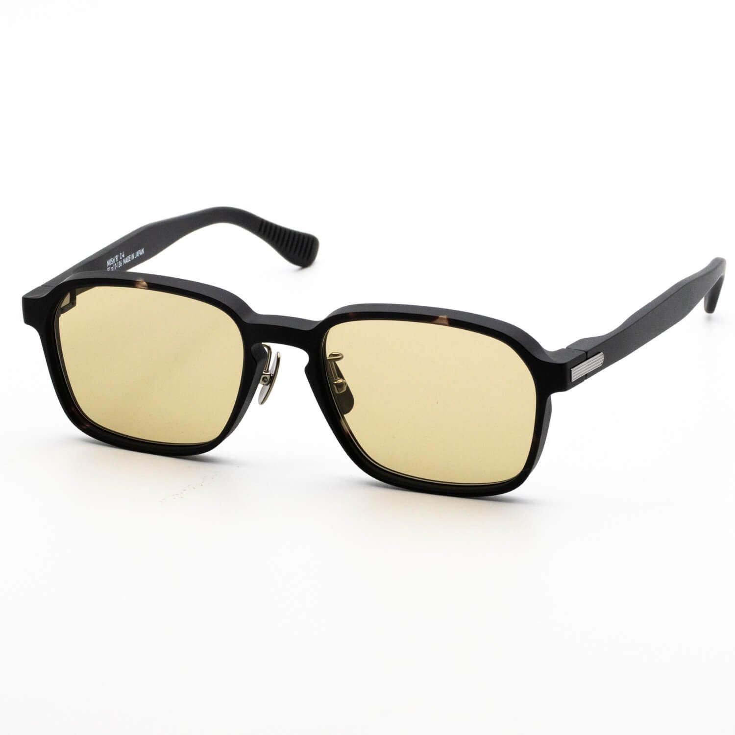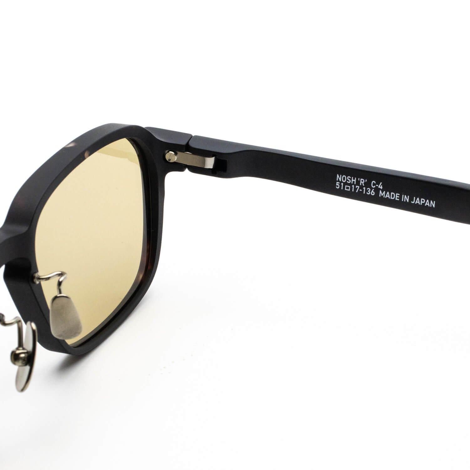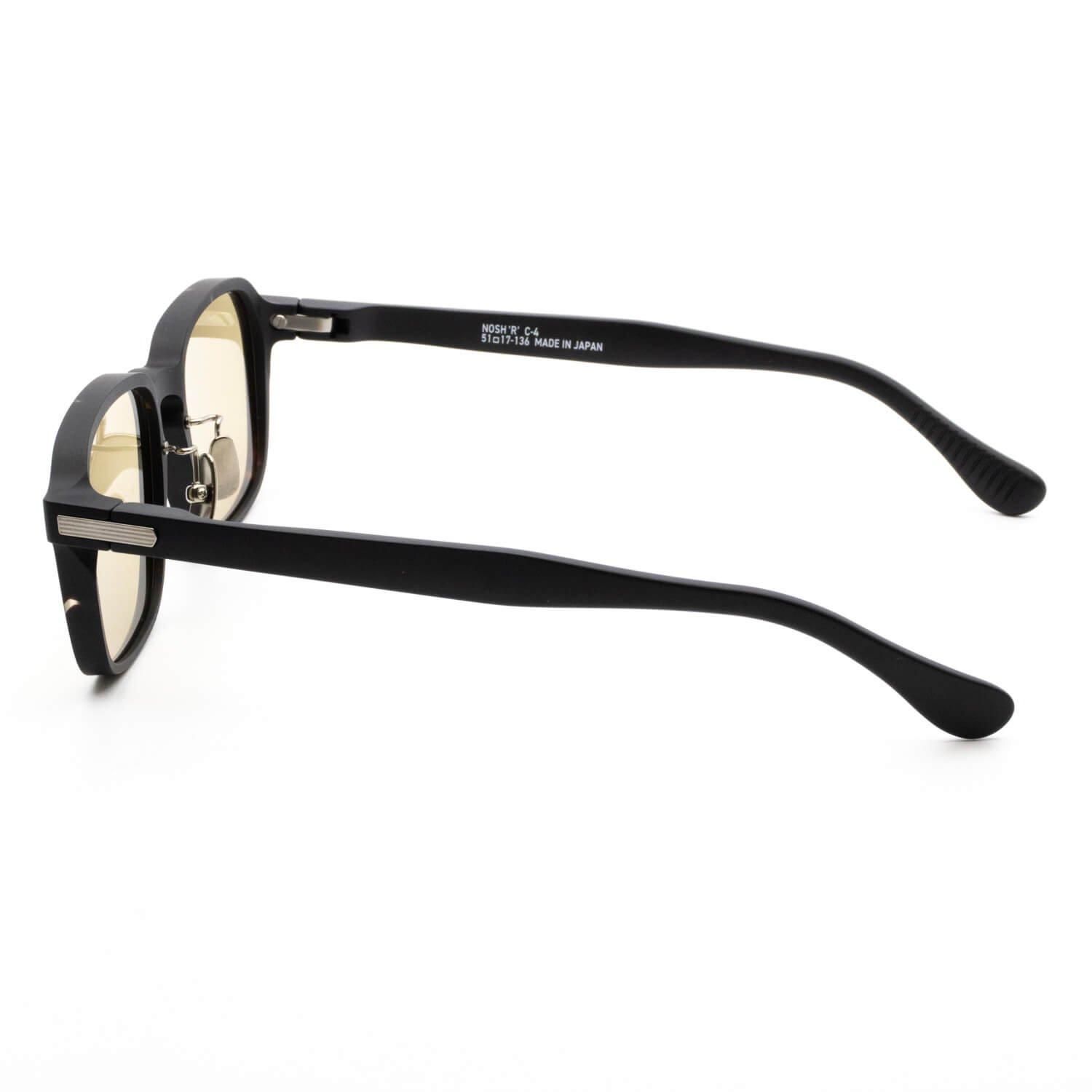 【NOSH'R'】は、海外っぽさを取り入れたややワイドなスクエアシェイプ。カチッとした印象がありながらも、ナードさも取り入れてデザインされているので、さりげなく個性が光り周りの目を引く一本です。レンズのフレーム枠は、奥行のボリューム感はあるものの、正面から見ると細くスッキリとした印象。角度によって雰囲気が異なるのも魅力です。