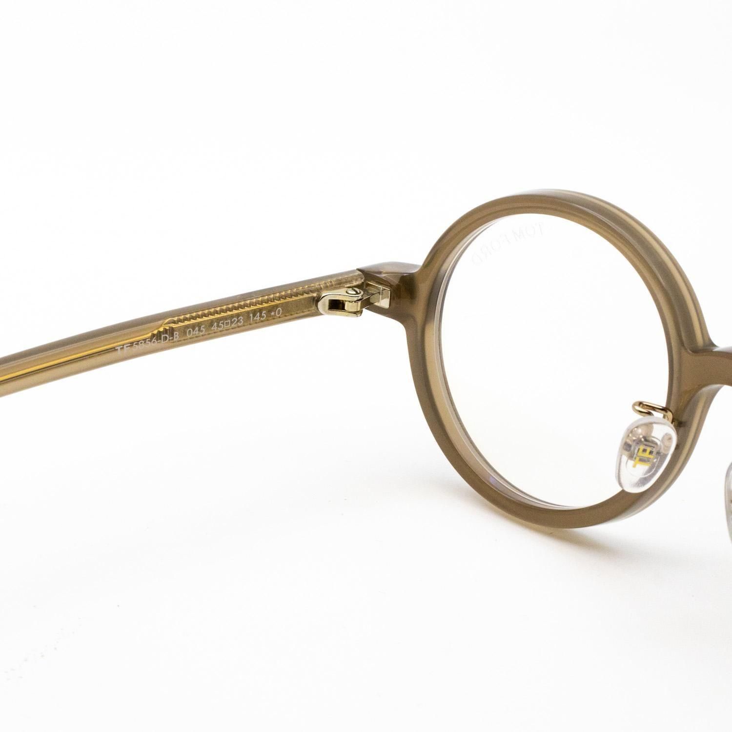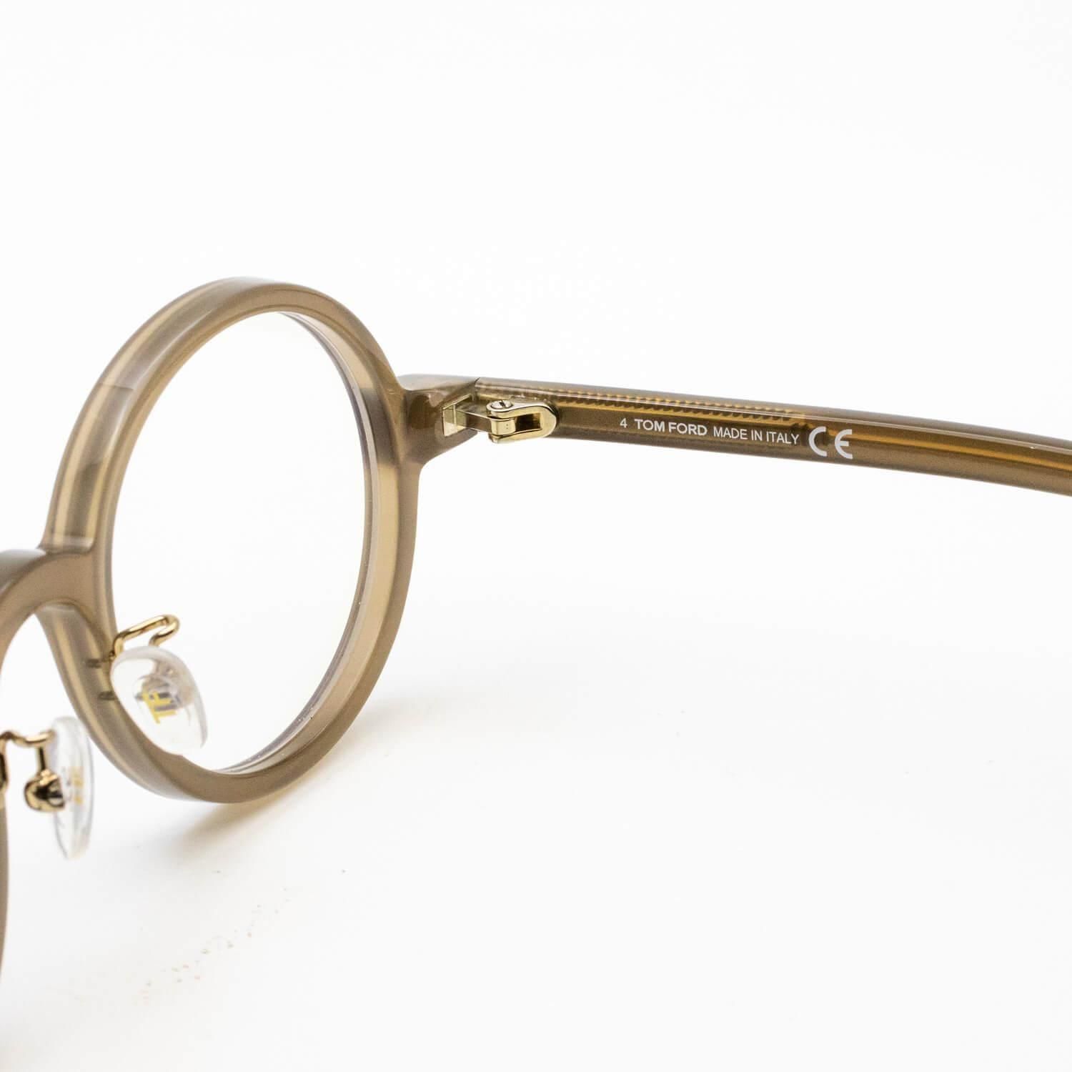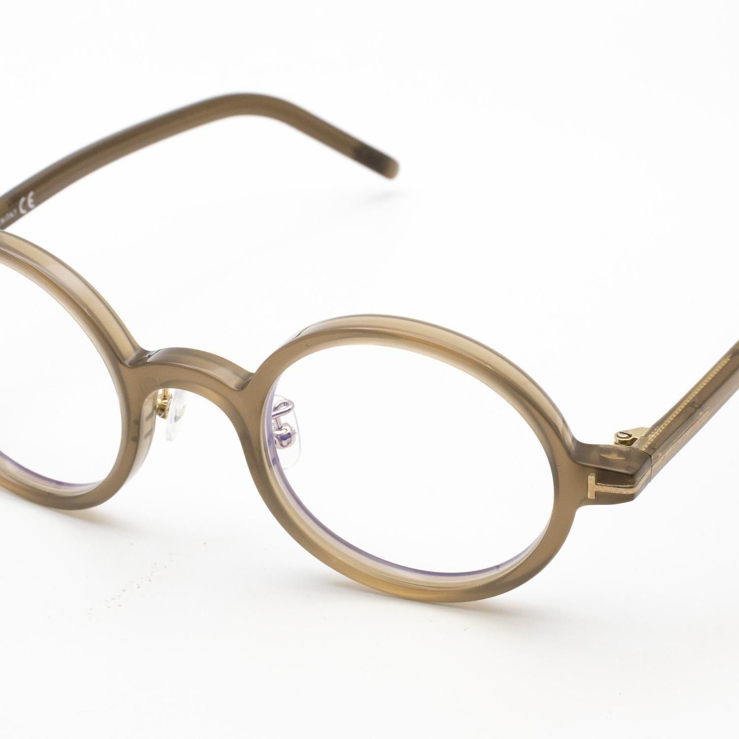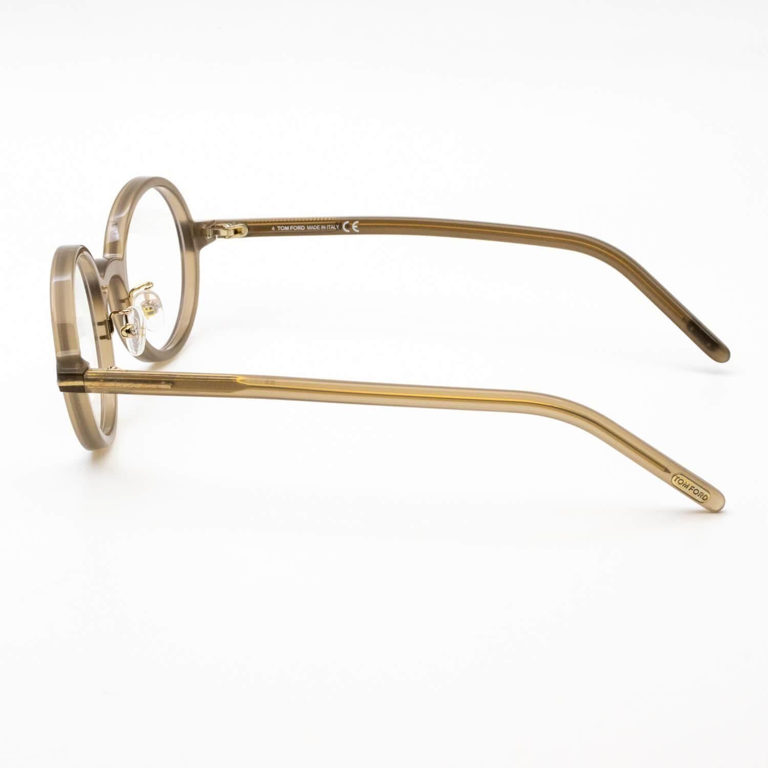 TOM FORDでは珍しいラウンドタイプで、程よいボリューム感とシンプルな上質さを併せ持ったデザインが魅力。レンズ横に配された“T”型メタルパーツが、フレーム全体を上品に引き締めます。