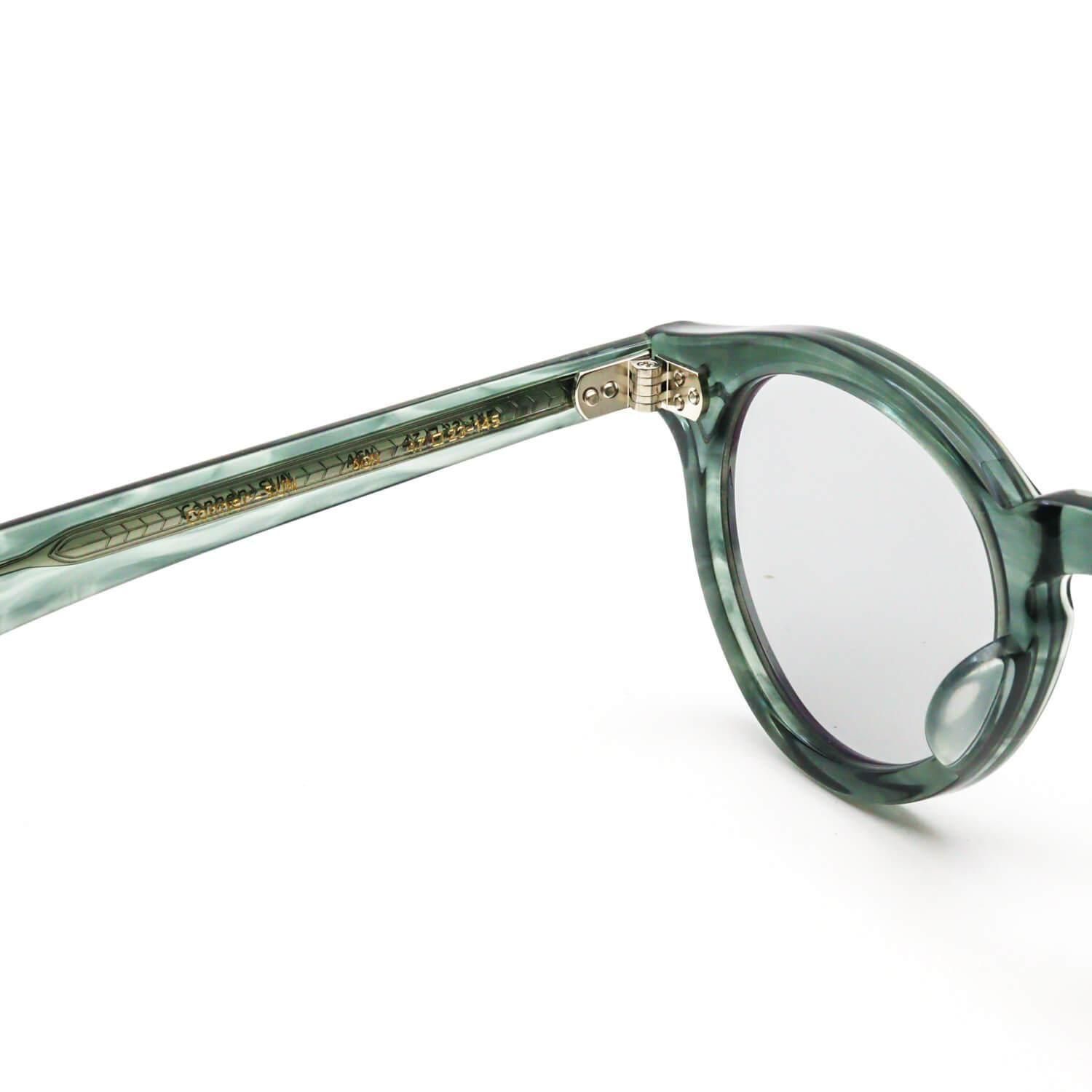 【Conner-Sun】は、エッヂが利いた肉厚なフロントと極太なワイドテンプルが印象的なボストンシェイプのサングラス。60年代のフレンチヴィンテージの中でも名作として知られるラウンドパントフレームがデザインのベースとなっています。肉厚なフロントには、アウトラインを残しつつ油圧プレスで立体感をプラス。EYEVANが考えるフレンチヴィンテージをを一歩先へ進めたモデルです。