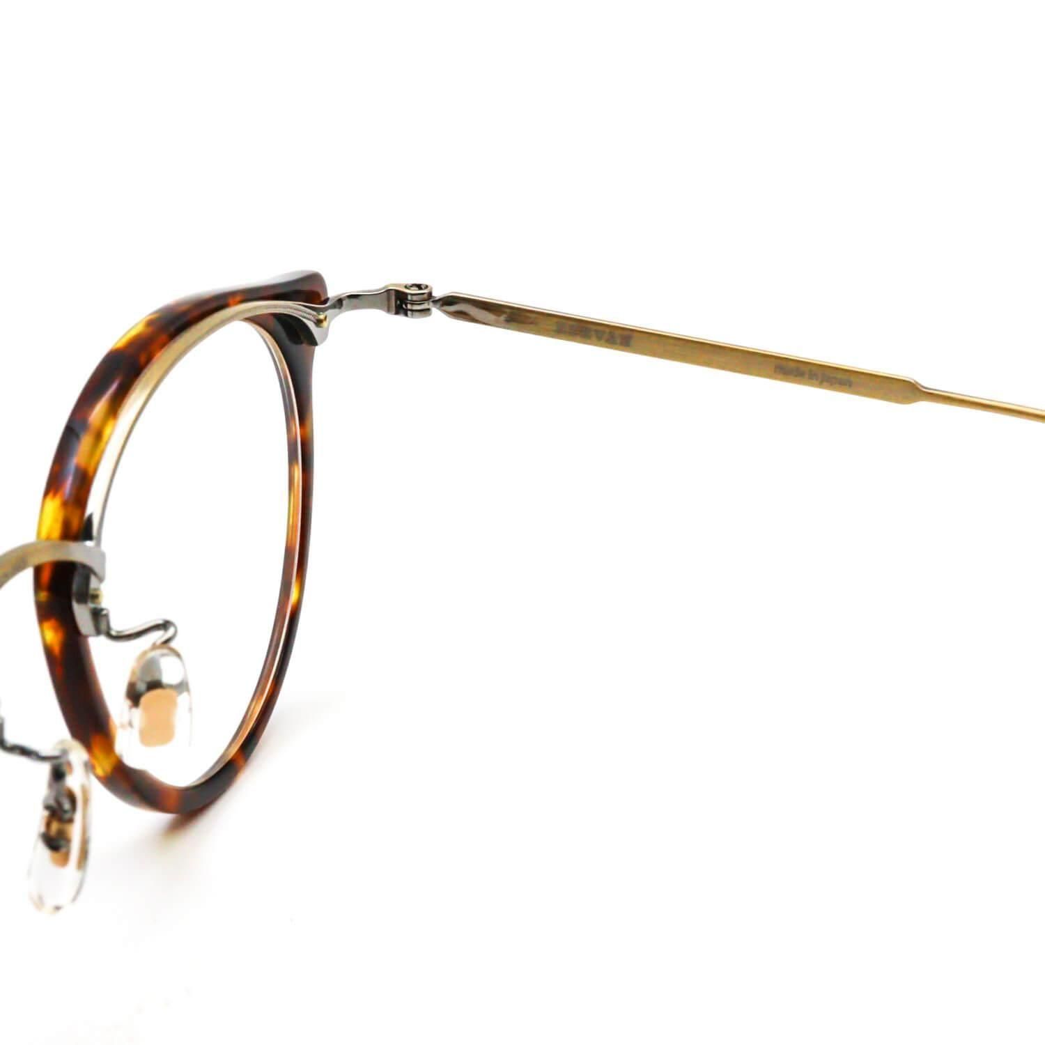 プラスチックのリムの裏側に、繊細で美しいミル模様を施したメタルパーツを組み合わせて二重構造にすることでフレームのねじれを防ぎ、強度も増しています。