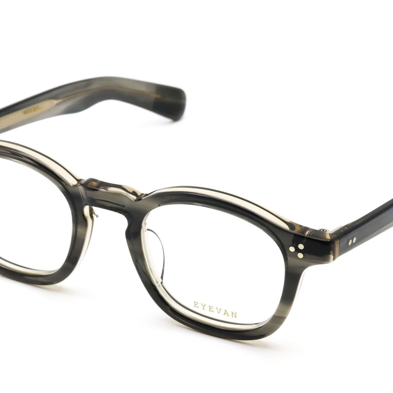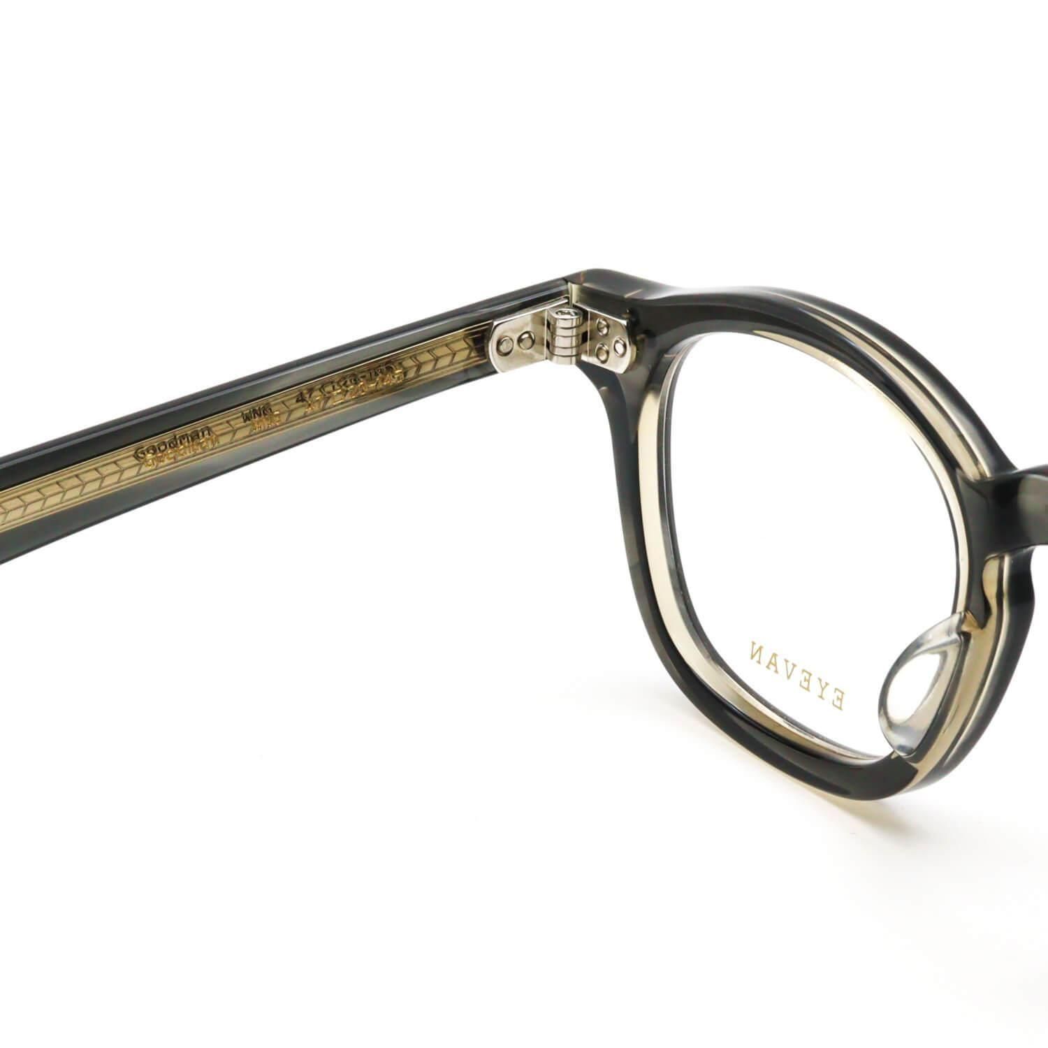 【Goodman】は、エッヂが利いた肉厚なフロントと極太なワイドテンプルが印象的なウェリントンシェイプのメガネフレーム。50年代に作られた細めのラインのフレンチウェリントンがデザインのベースとなっています。肉厚なフロントには、アウトラインを残しつつ油圧プレスで立体感をプラス。EYEVANが考えるフレンチヴィンテージを一歩先へ進めたモデルです。