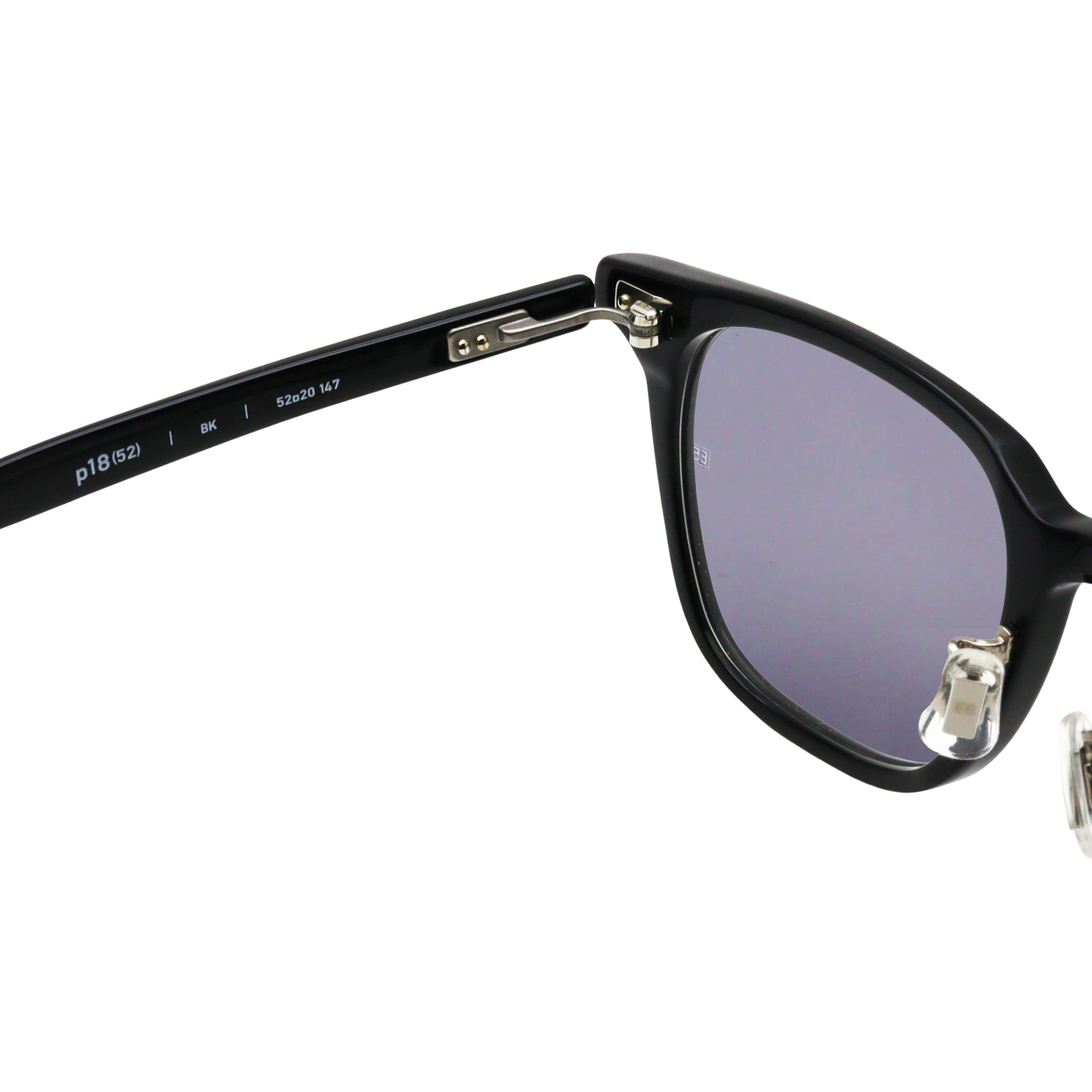 【P18】は従来モデルに比べてリムが細く、スッキリとした印象で掛けられるウェリントンシェイプ。カジュアルにはもちろん、フォーマルなシーンでも違和感なく掛けられます。レンズの横幅が52mmと男性向けの大きめのサイズ感でテンプルも外側にしなるため、掛け心地に圧迫感がないのも特徴。体格の良い方にもしっかり馴染みます。