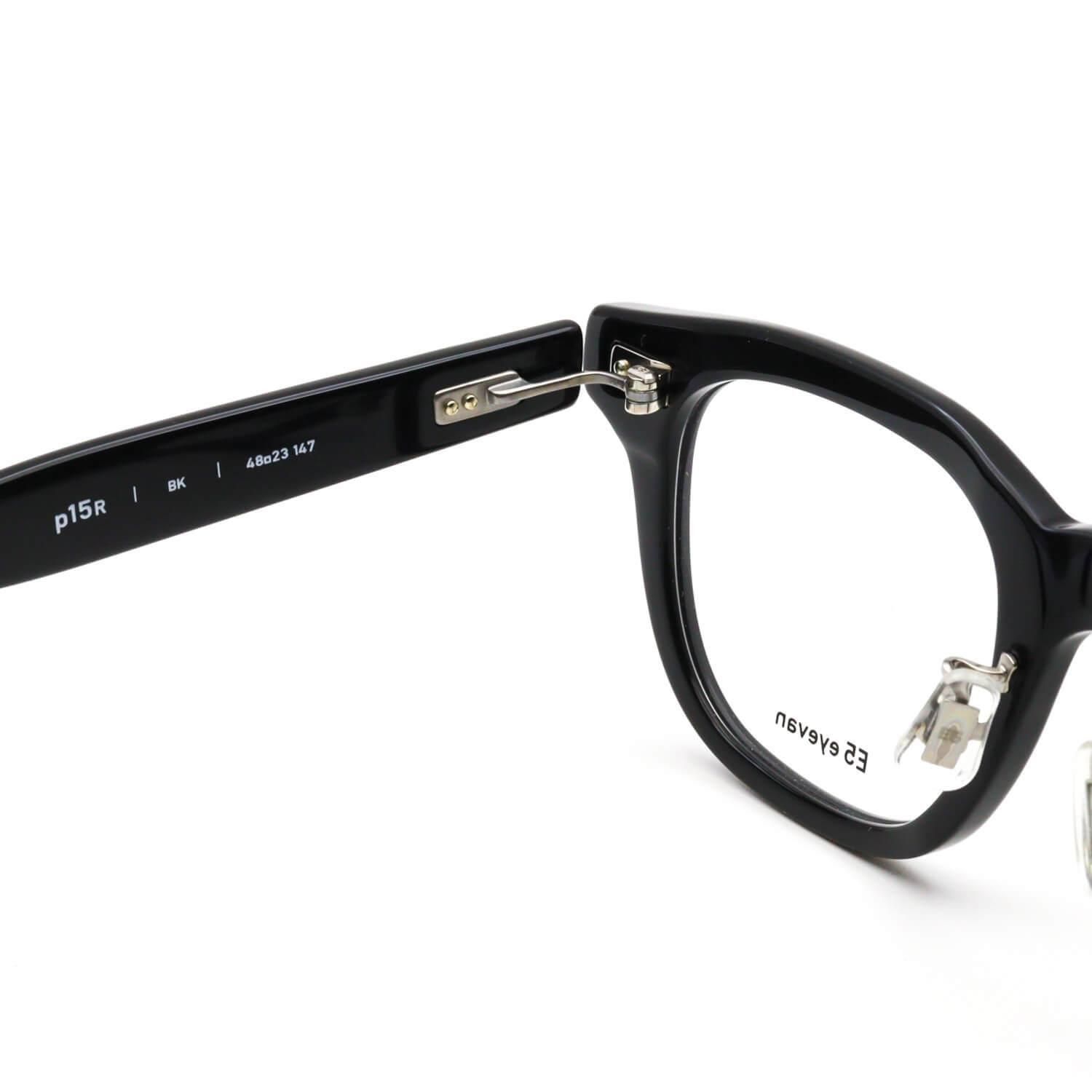 【p15R】は,全体的に肉厚でボリュームのあるウェリントンシェイプ。フロントに使用しているプラスチック生地は、高密度で変形が少なく、経年変化しにくい「Highcount acetate」。テンプルを長く幅を広く設計することで、側頭部に接する面積が広くなり、フィット感抜群です。見た目に反して掛け心地がとても軽いので、「ボリュームのあるフレームを掛けたいけれど、重みを感じたり、疲れるのは嫌」という方には特におすすめです。