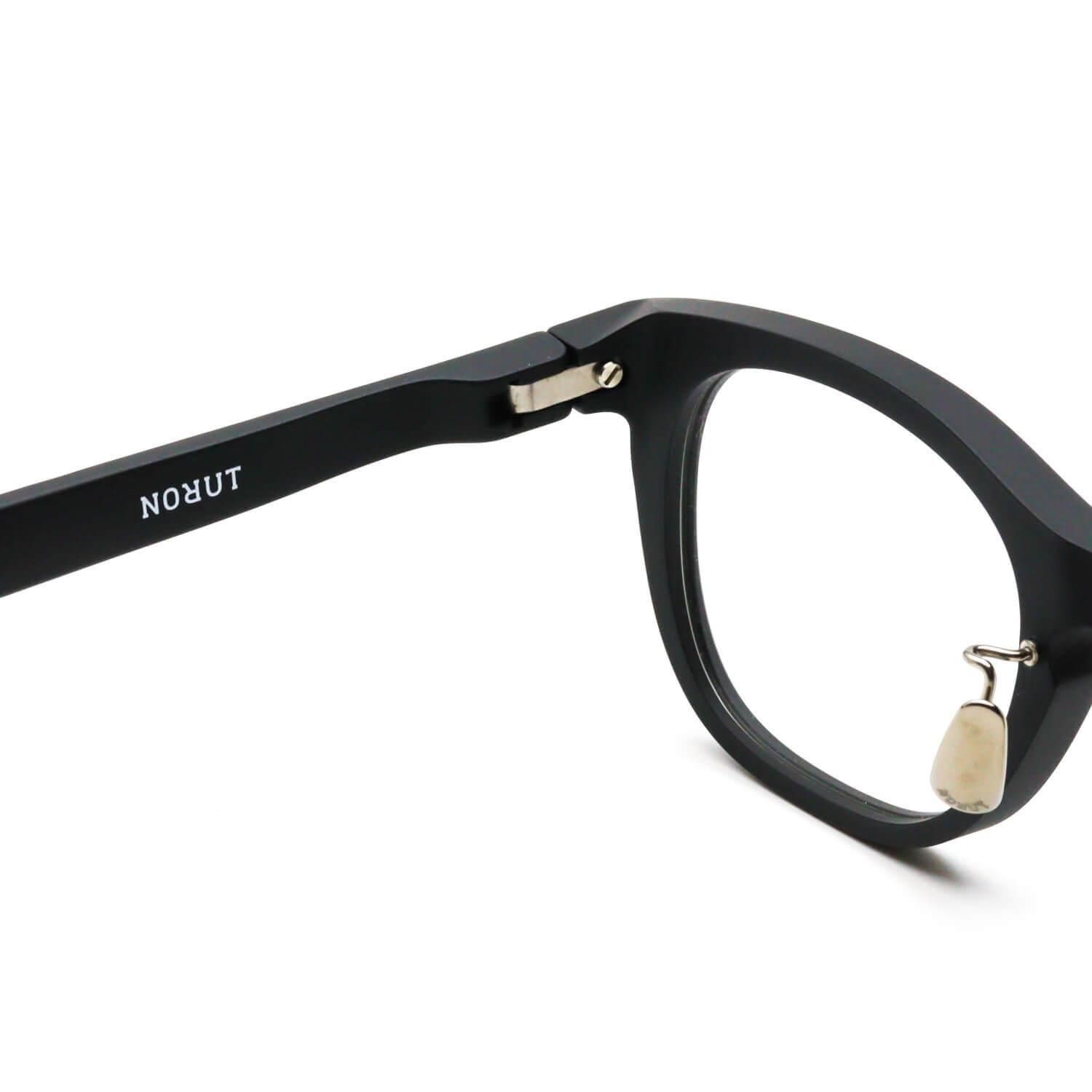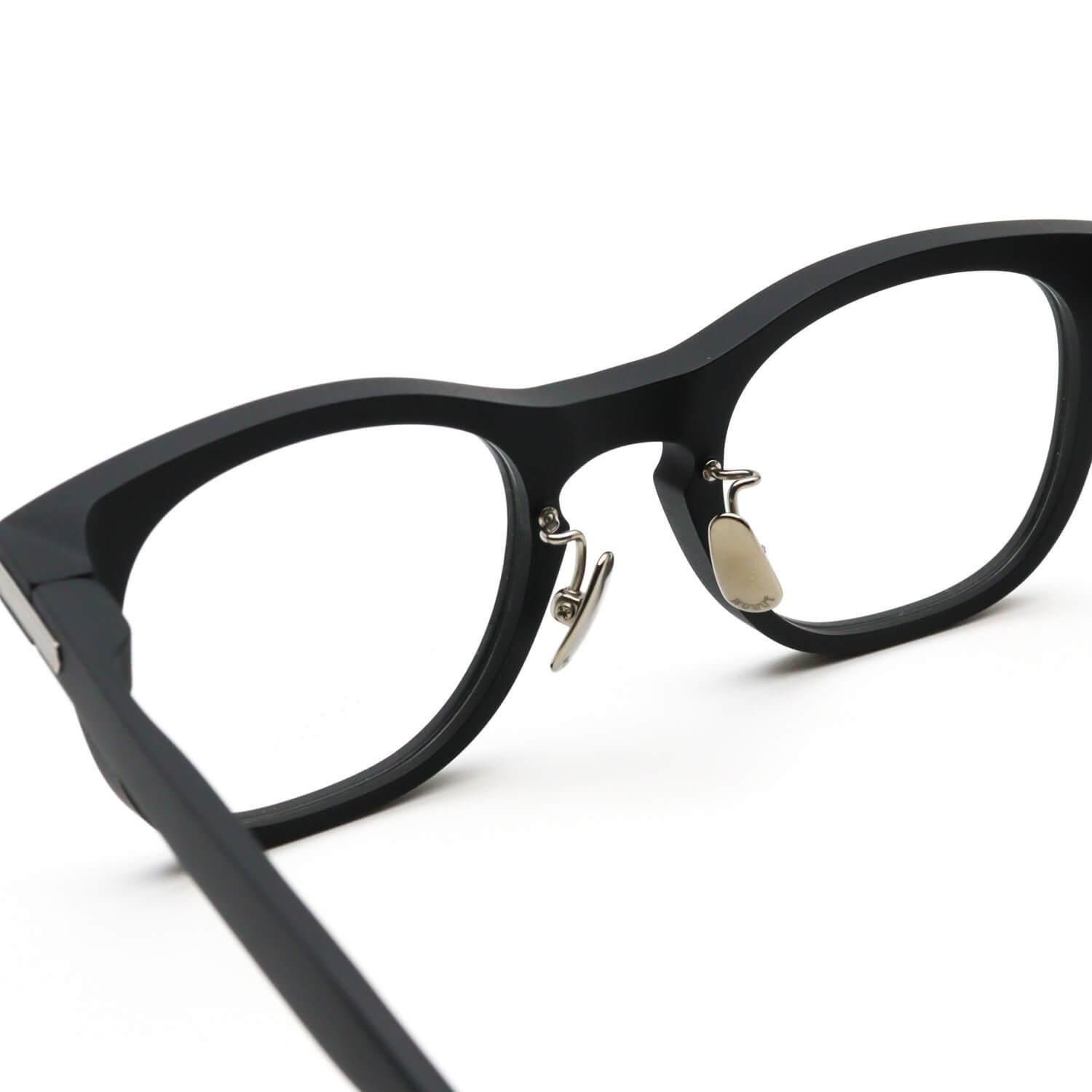 フロント使用されている素材は「トロガミド」と呼ばれるとても軽量なナイロン素材。メガネによく使用されるアセテートと比べて縮みや変形も起こりにくいく、とても軽いので長時間掛けても疲れにくいのが利点です。