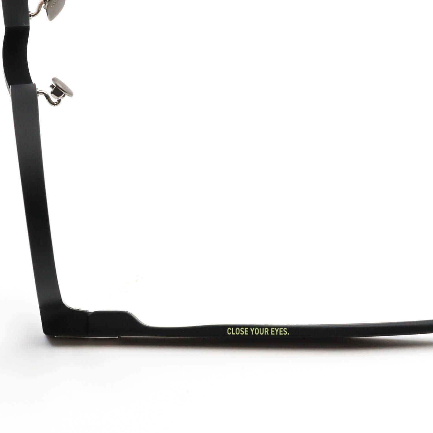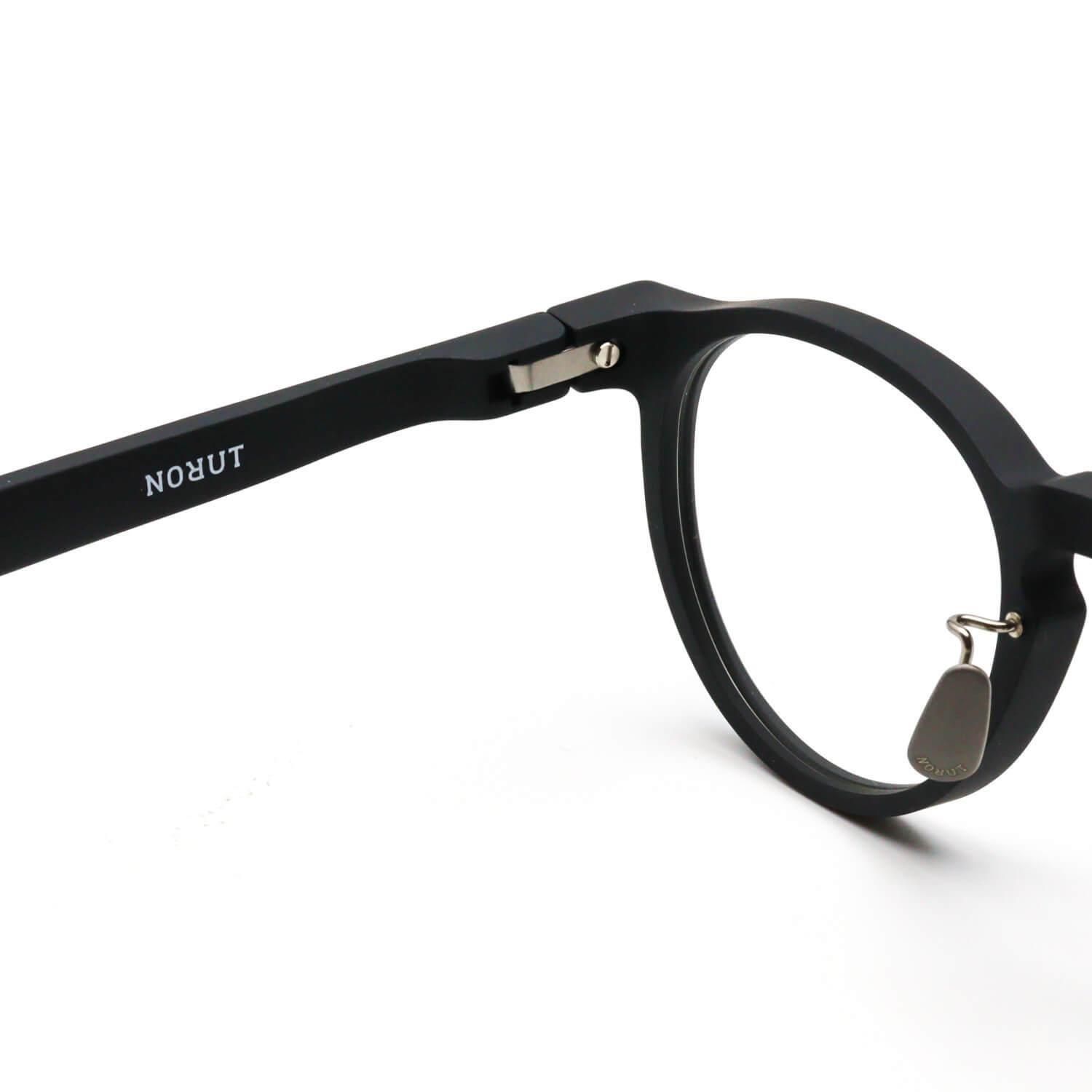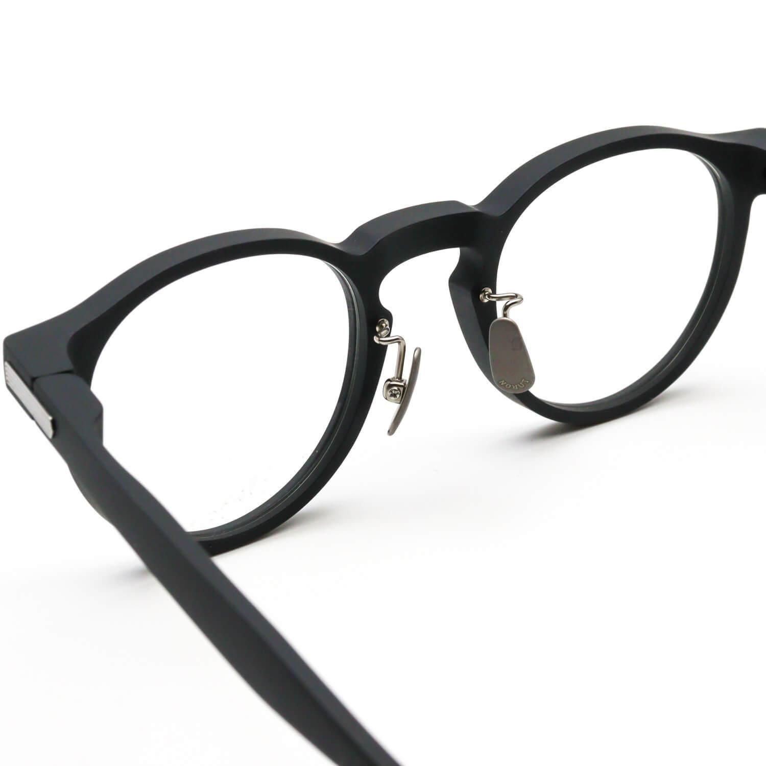フロント使用されている素材は「トロガミド」と呼ばれるとても軽量なナイロン素材。メガネによく使用されるアセテートと比べて縮みや変形も起こりにくいく、とても軽いので長時間掛けても疲れにくいのが利点です。