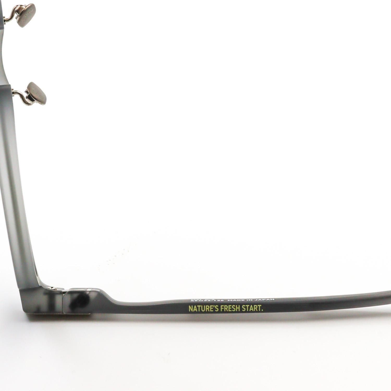 フロント使用されている素材は「トロガミド」と呼ばれるとても軽量なナイロン素材。メガネによく使用されるアセテートと比べて縮みや変形も起こりにくいく、とても軽いので長時間掛けても疲れにくいのが利点です。