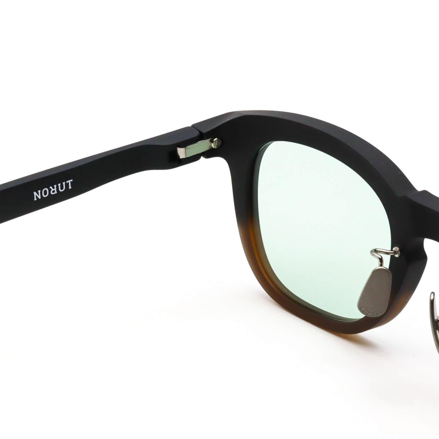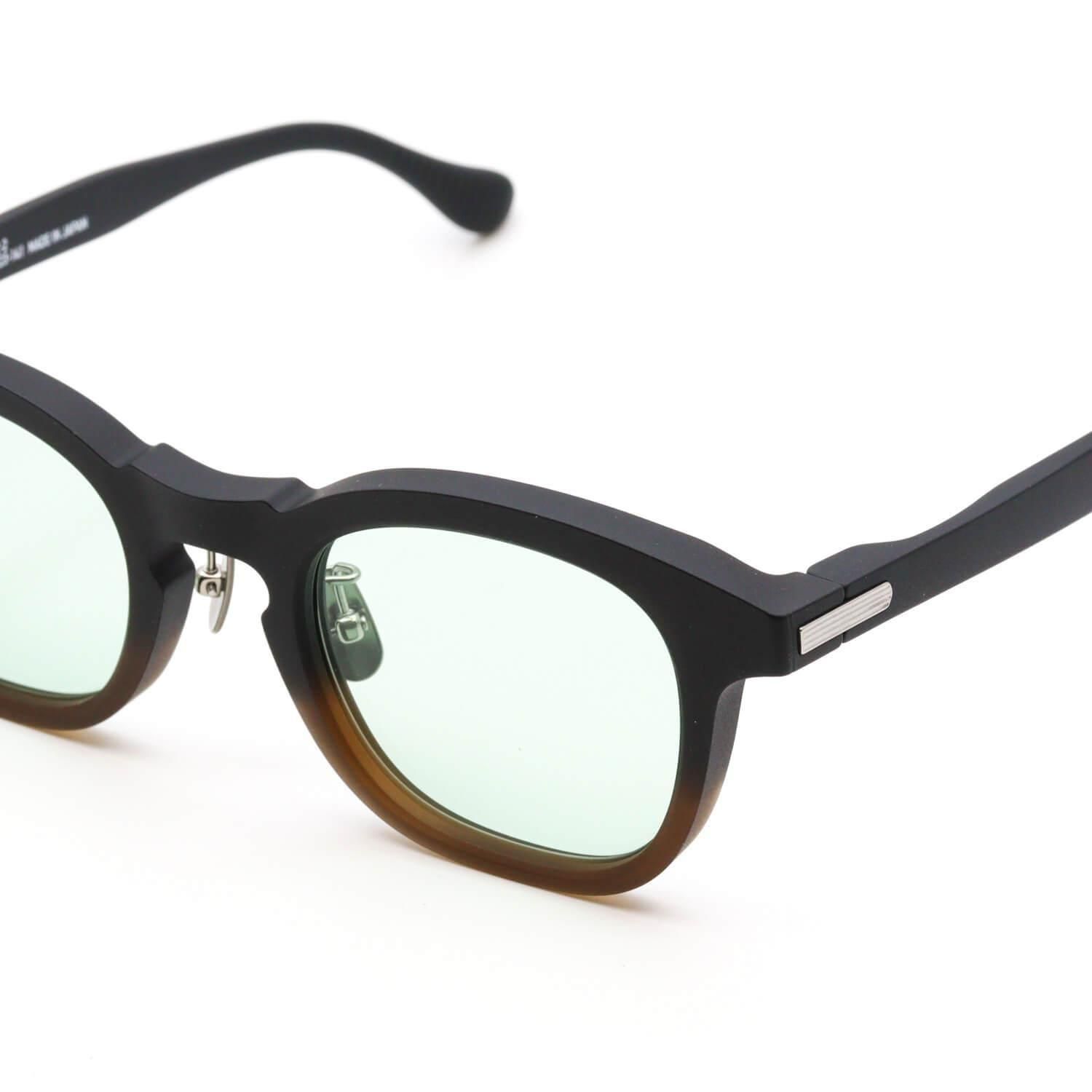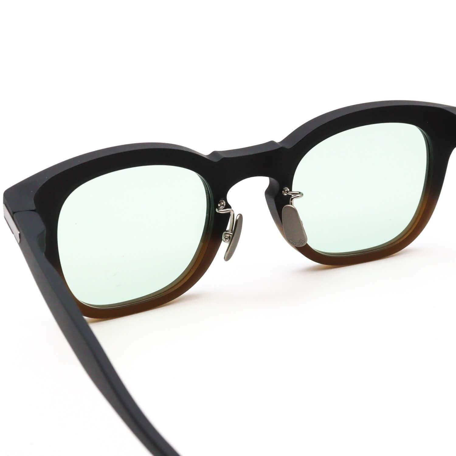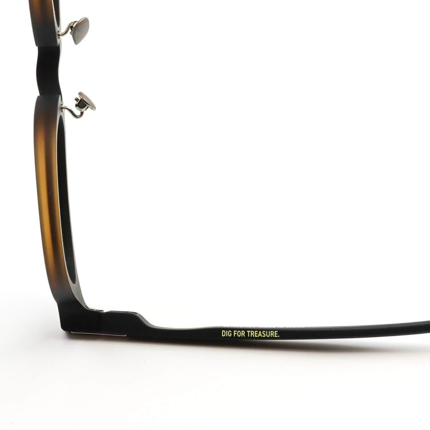 フロント使用されている素材は「トロガミド」と呼ばれるとても軽量なナイロン素材。メガネによく使用されるアセテートと比べて縮みや変形も起こりにくいく、とても軽いので長時間掛けても疲れにくいのが利点です。