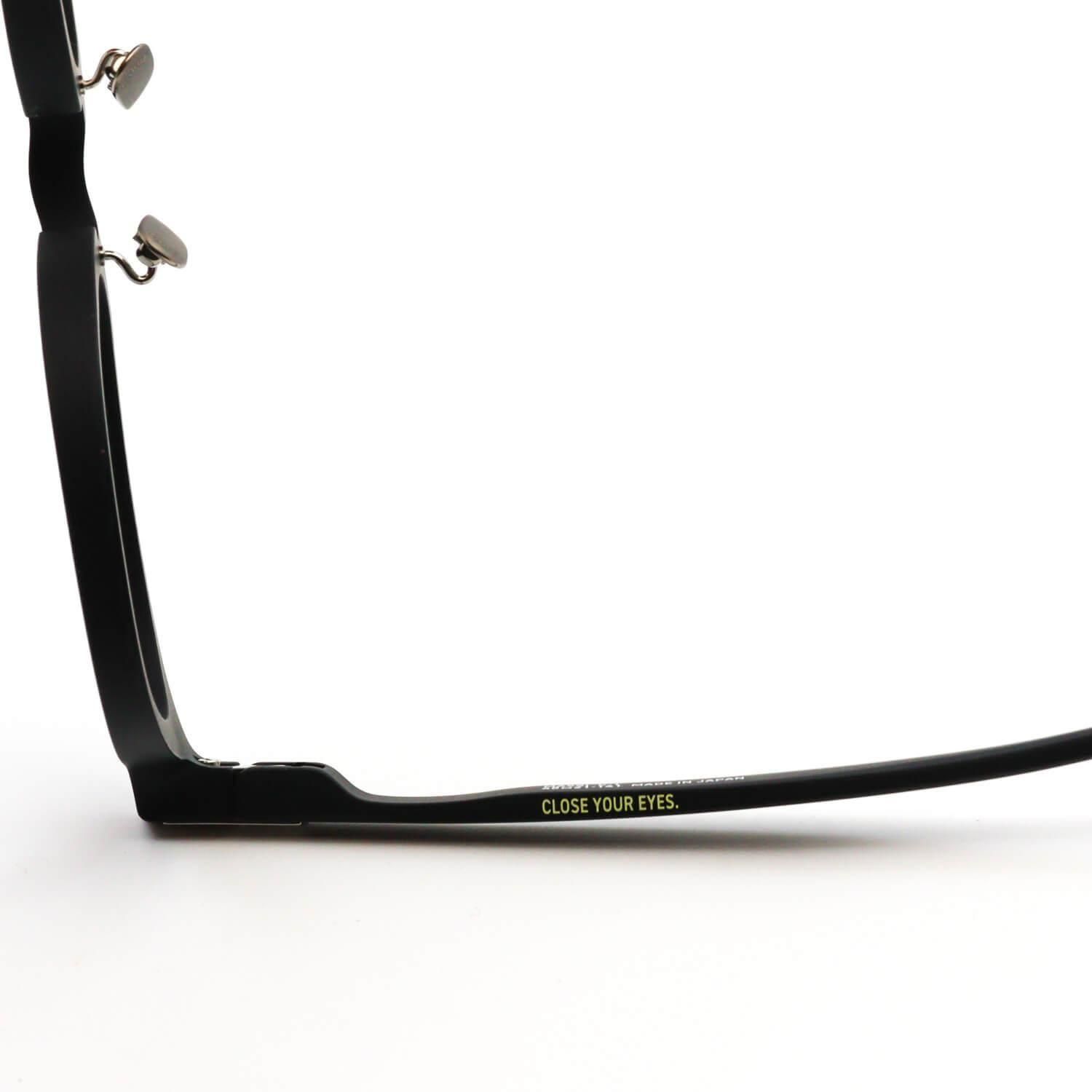 フロント使用されている素材は「トロガミド」と呼ばれるとても軽量なナイロン素材。メガネによく使用されるアセテートと比べて縮みや変形も起こりにくいく、とても軽いので長時間掛けても疲れにくいのが利点です。