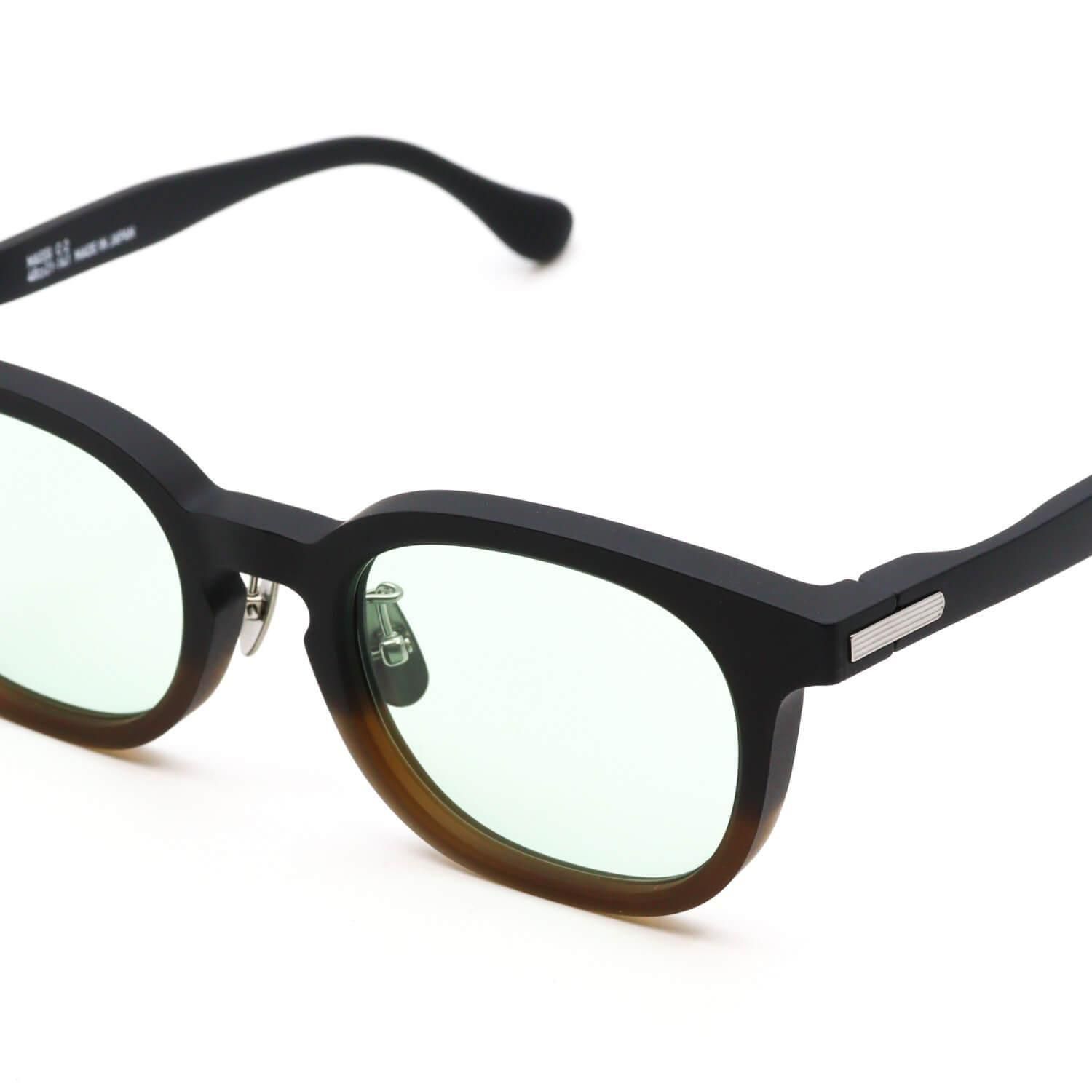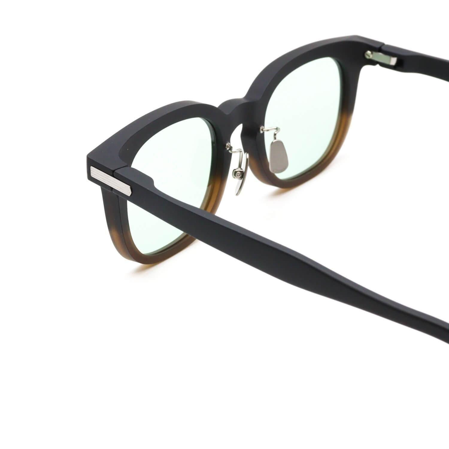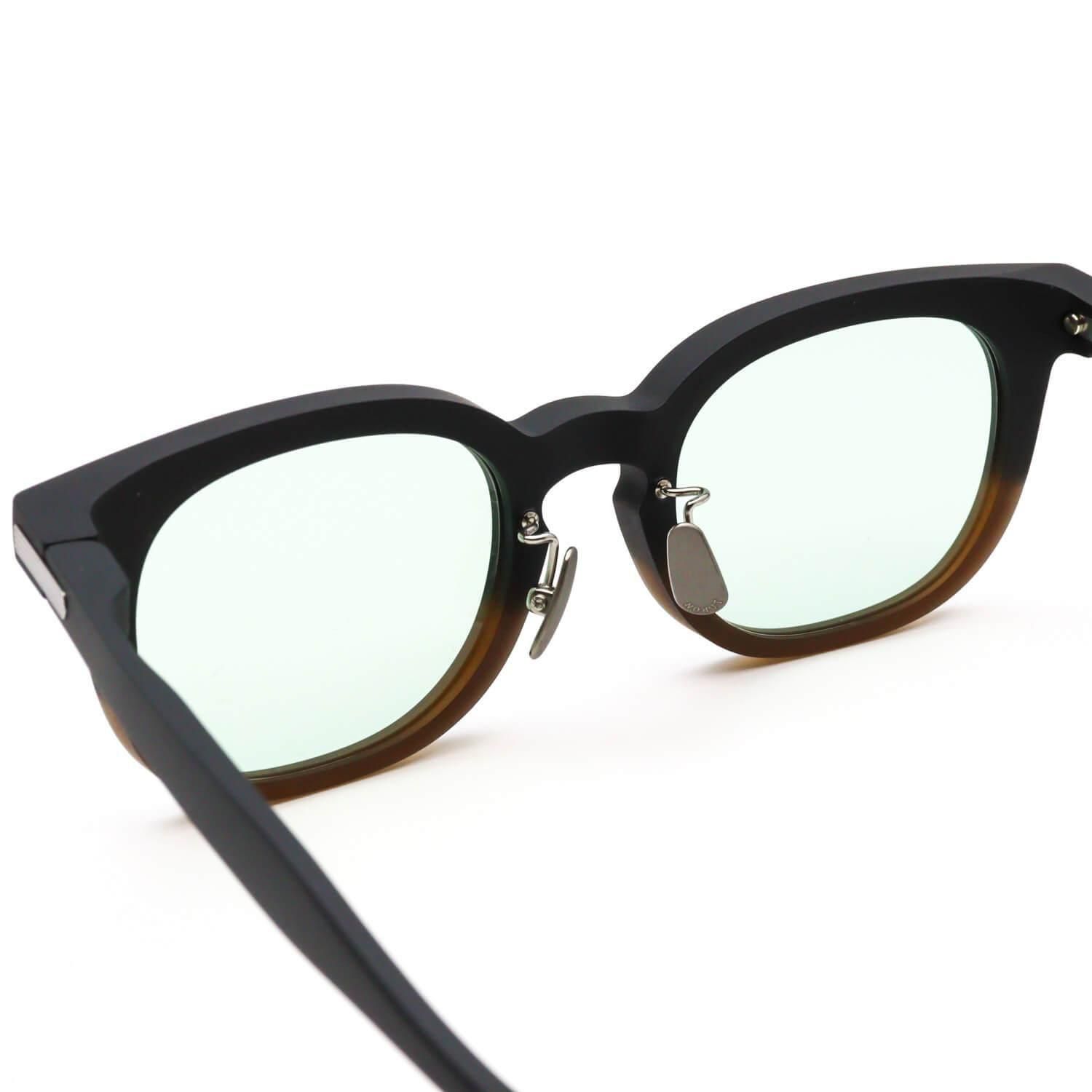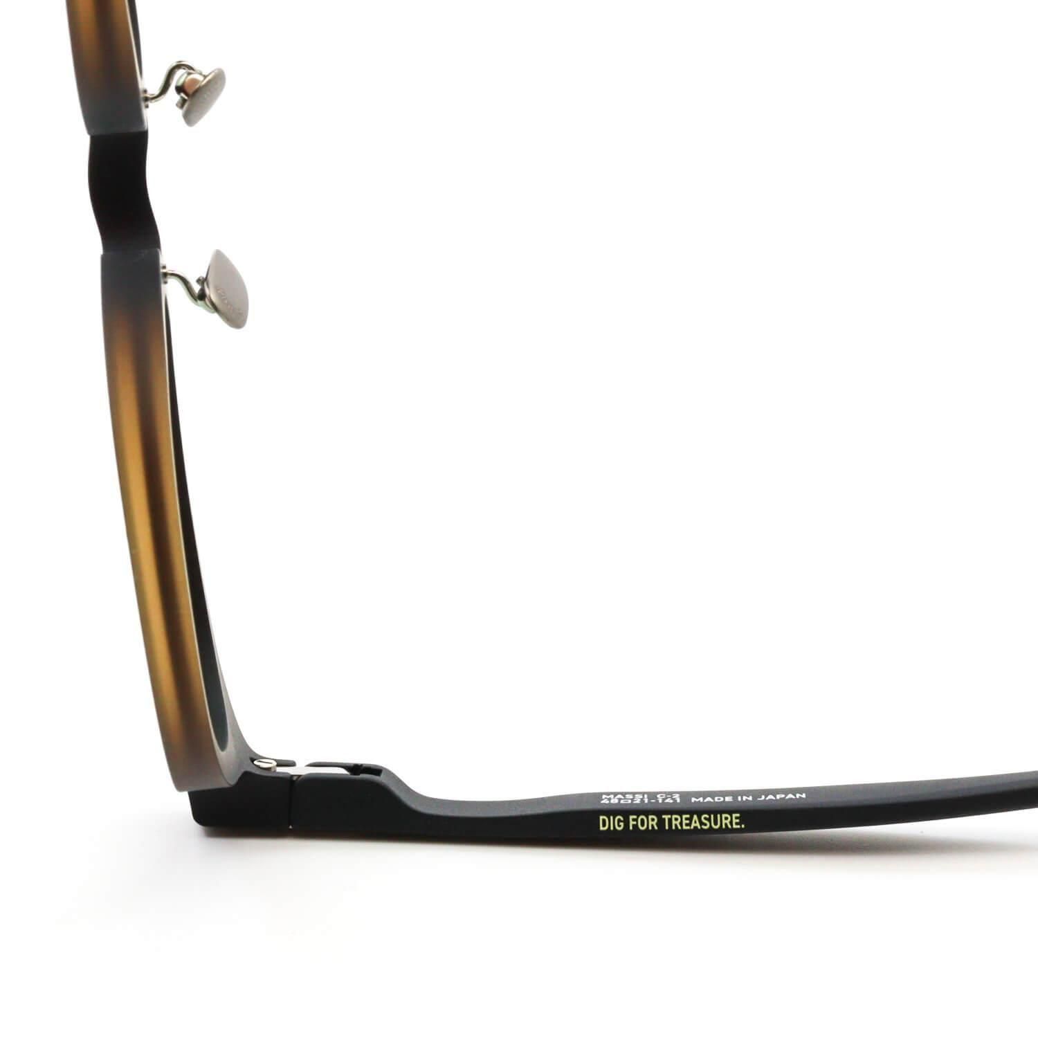 フロント使用されている素材は「トロガミド」と呼ばれるとても軽量なナイロン素材。メガネによく使用されるアセテートと比べて縮みや変形も起こりにくいく、とても軽いので長時間掛けても疲れにくいのが利点です。