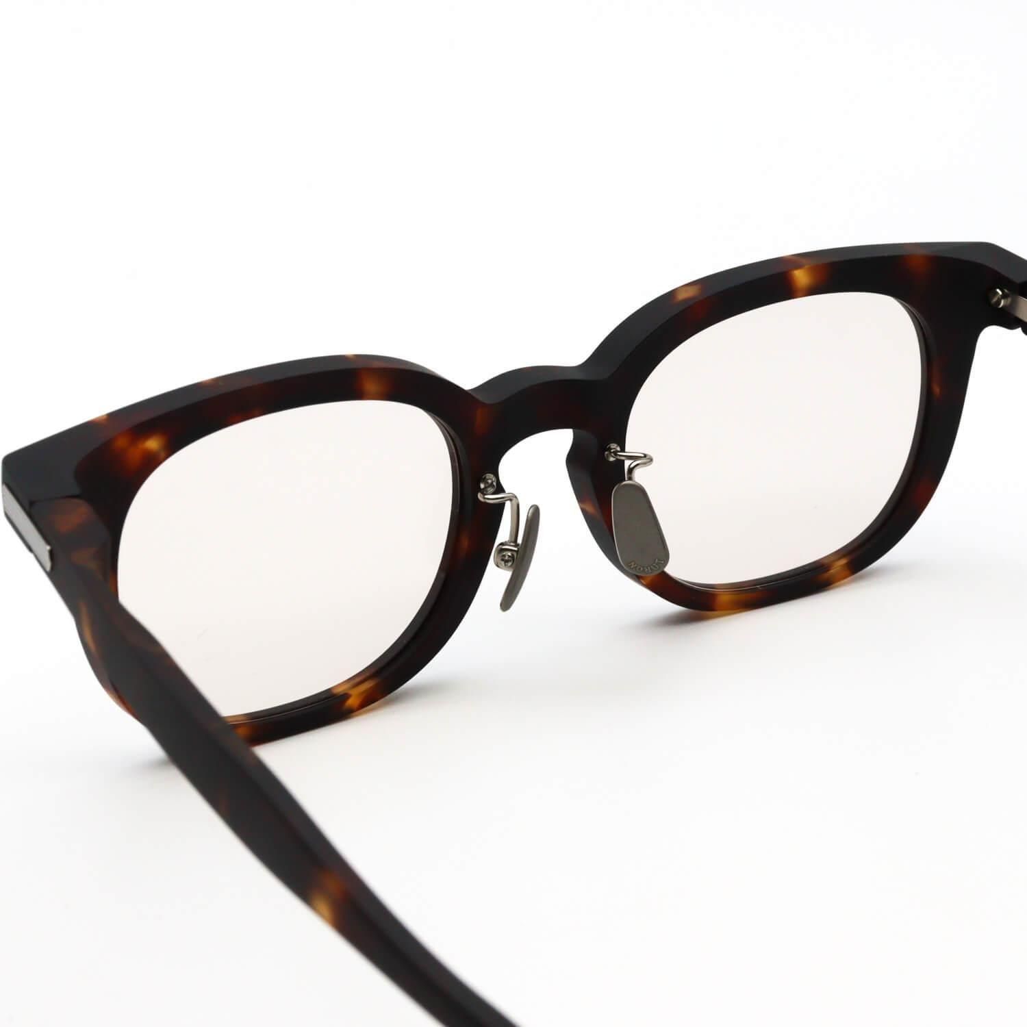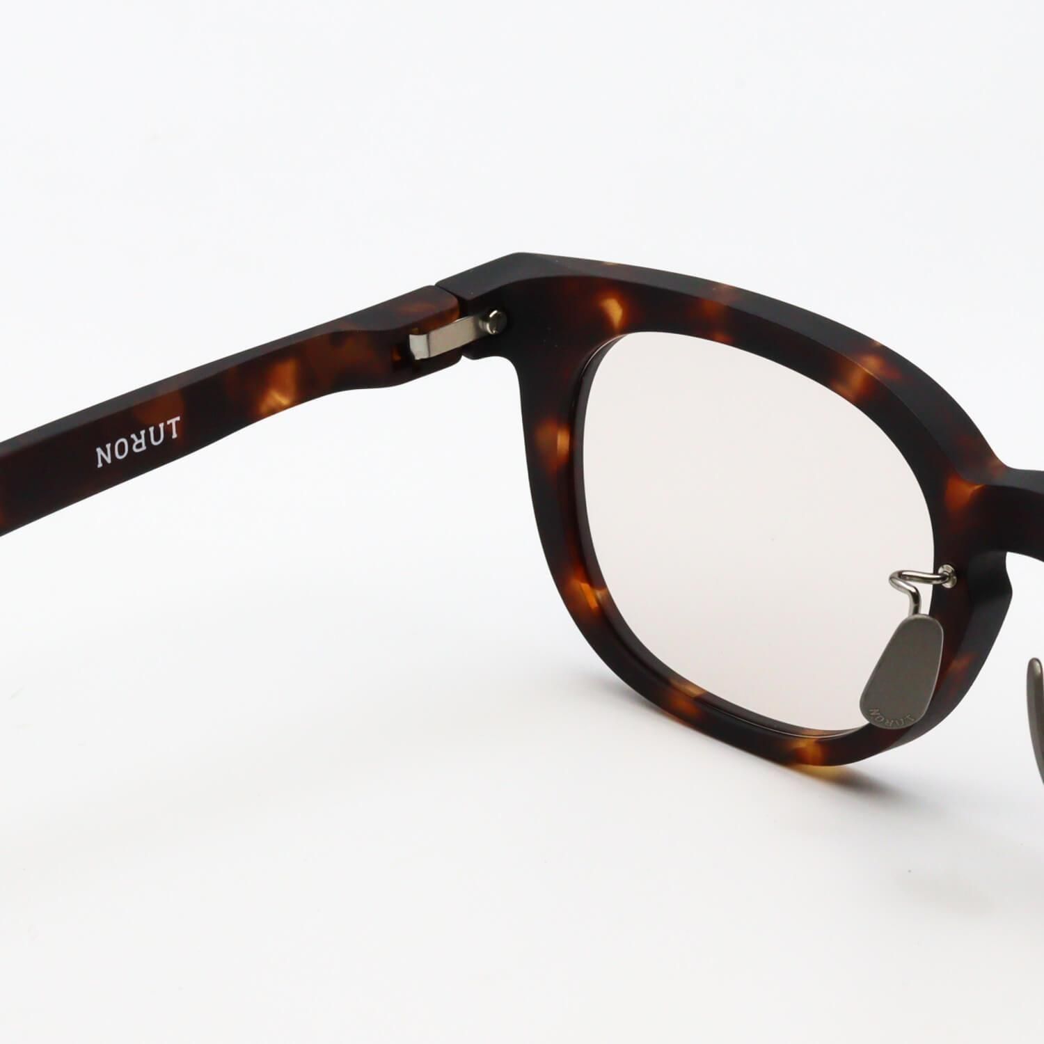 フロント使用されている素材は「トロガミド」と呼ばれるとても軽量なナイロン素材。メガネによく使用されるアセテートと比べて縮みや変形も起こりにくいく、とても軽いので長時間掛けても疲れにくいのが利点です。