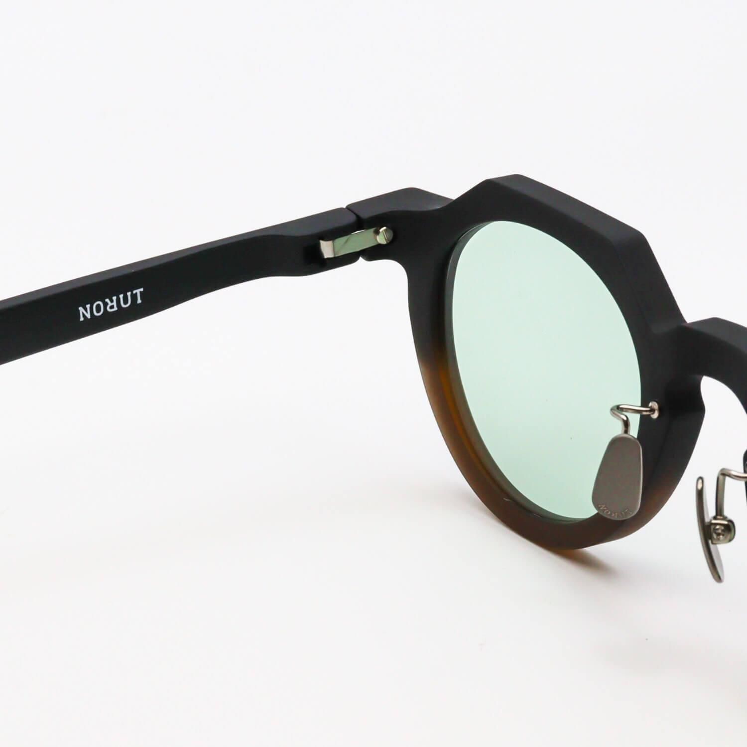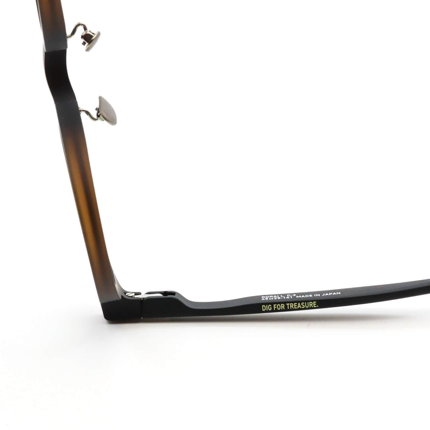 フロント使用されている素材は「トロガミド」と呼ばれるとても軽量なナイロン素材。メガネによく使用されるアセテートと比べて縮みや変形も起こりにくいく、とても軽いので長時間掛けても疲れにくいのが利点です。