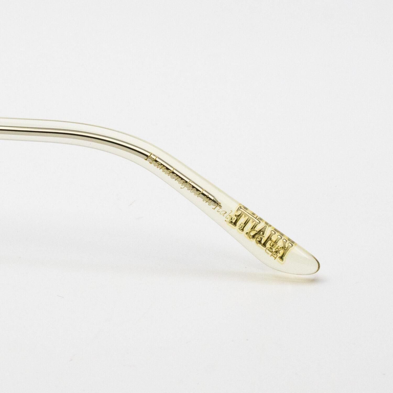 ニューヨーク発のアパレルブランド KHAITE(ケイト) とコラボレーションしたサングラス。2000年代のファッションを着想源に、さりげなくエッジを効かせたオーバルシェイプが魅力です。テンプルにのぞくゴールドの芯金がアクセントとなり、スタイリッシュな存在感を添えています。