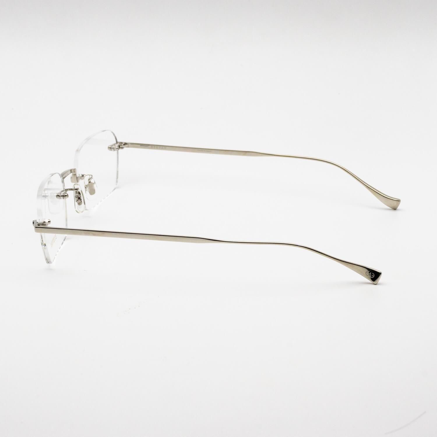【Grain】は、1990年代のラグジュアリーブランドからインスピレーションを得た直線的なヨロイデザインが印象的なリムレスフレーム。