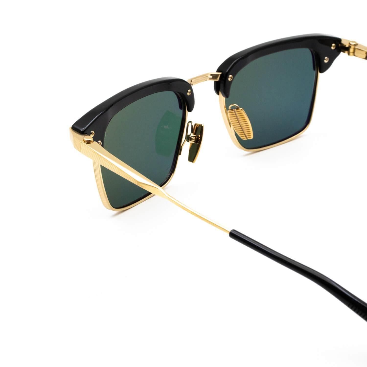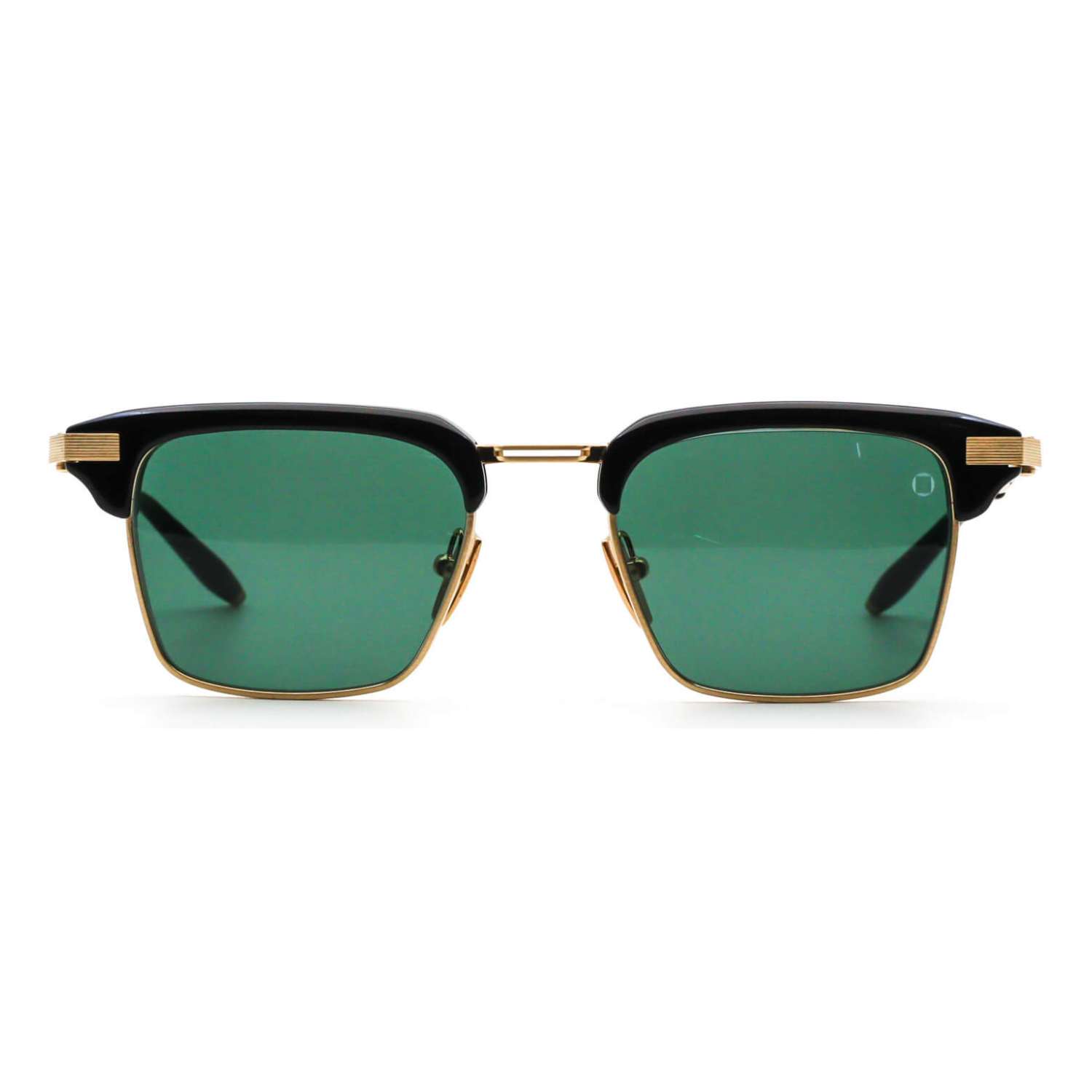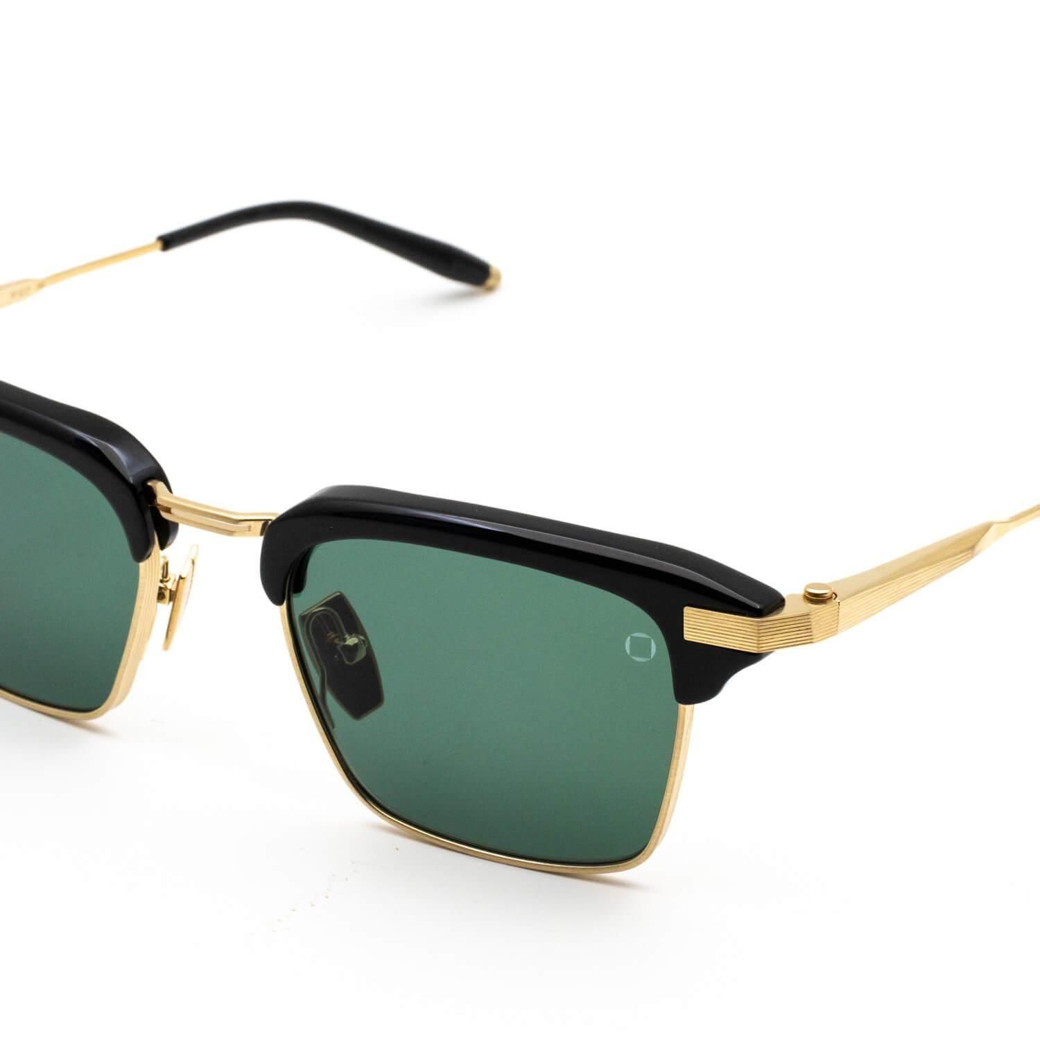直線的なフラットトップのブローライン、プレス加工されたチタンのディテール、オープンドリル加工のブリッジなど、細部にまでこだわったデザインが魅力。