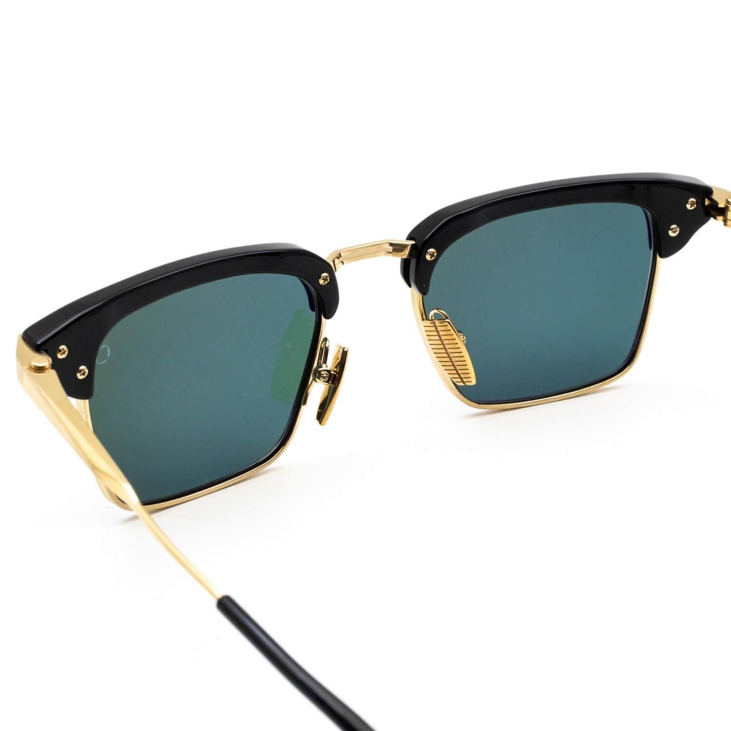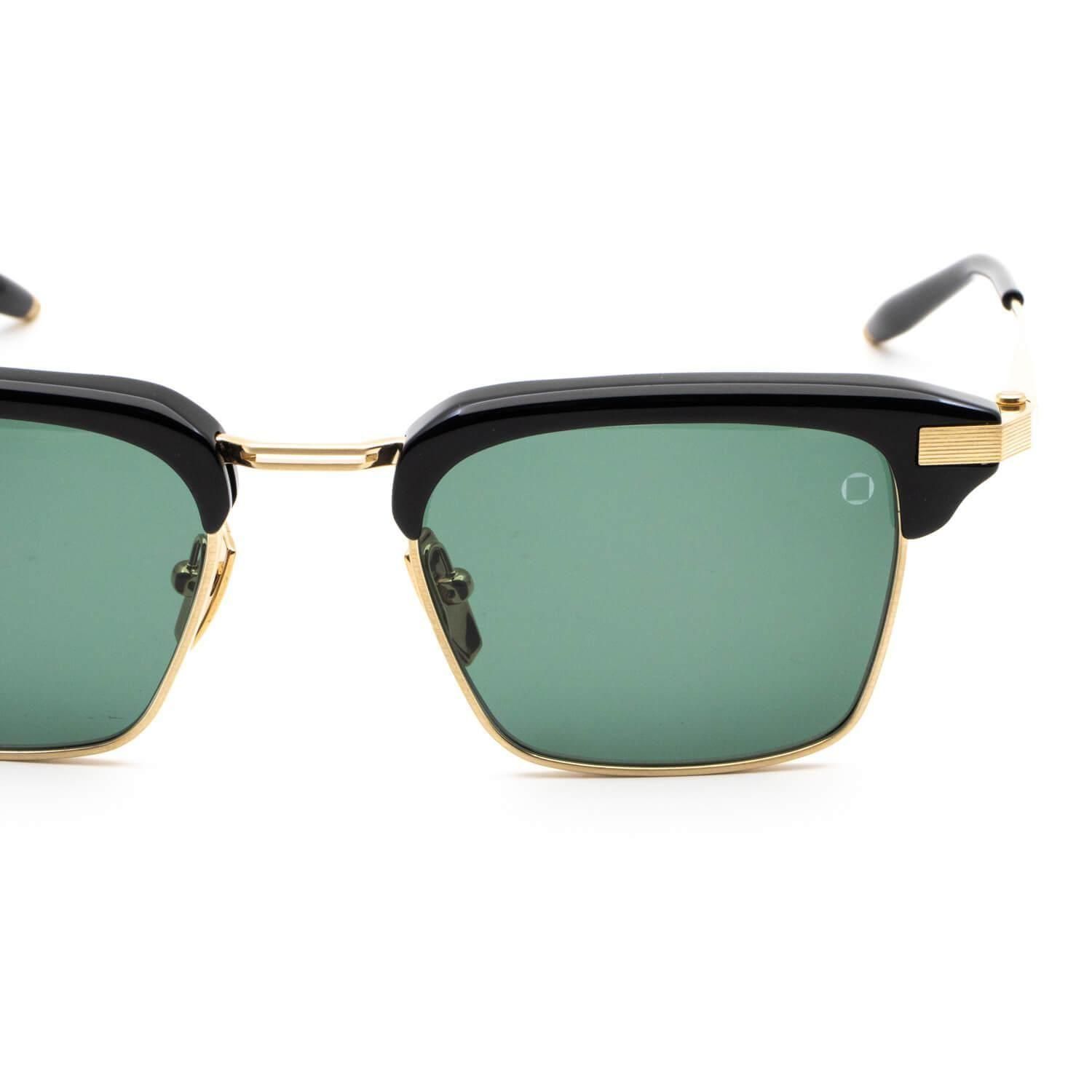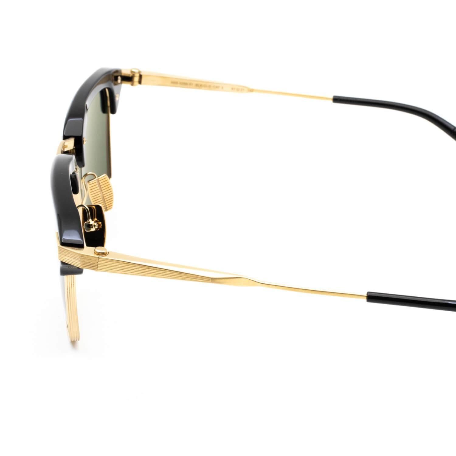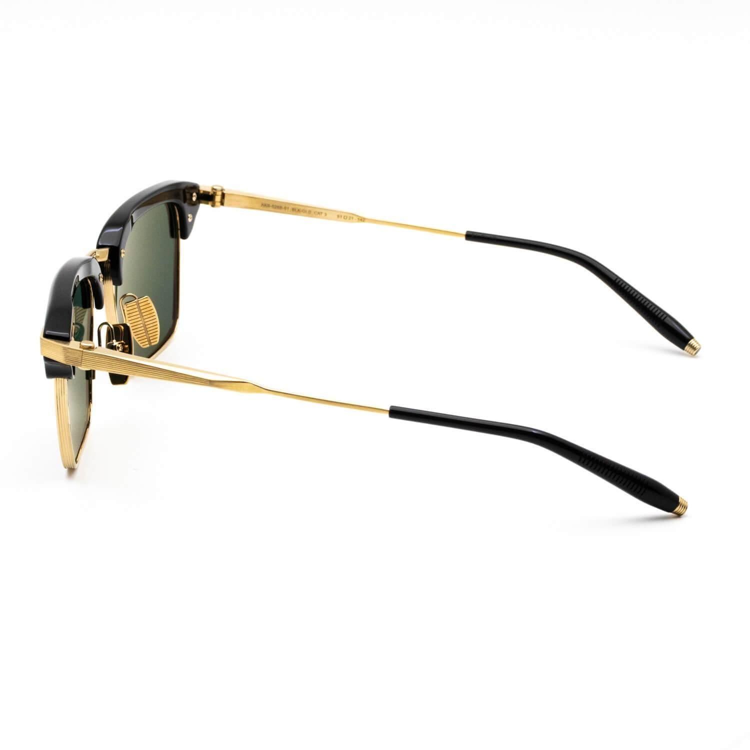 直線的なフラットトップのブローライン、プレス加工されたチタンのディテール、オープンドリル加工のブリッジなど、細部にまでこだわったデザインが魅力。