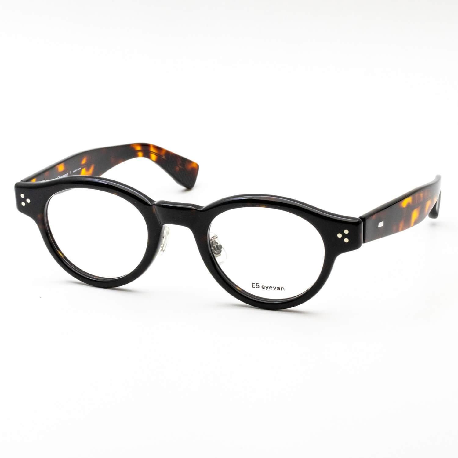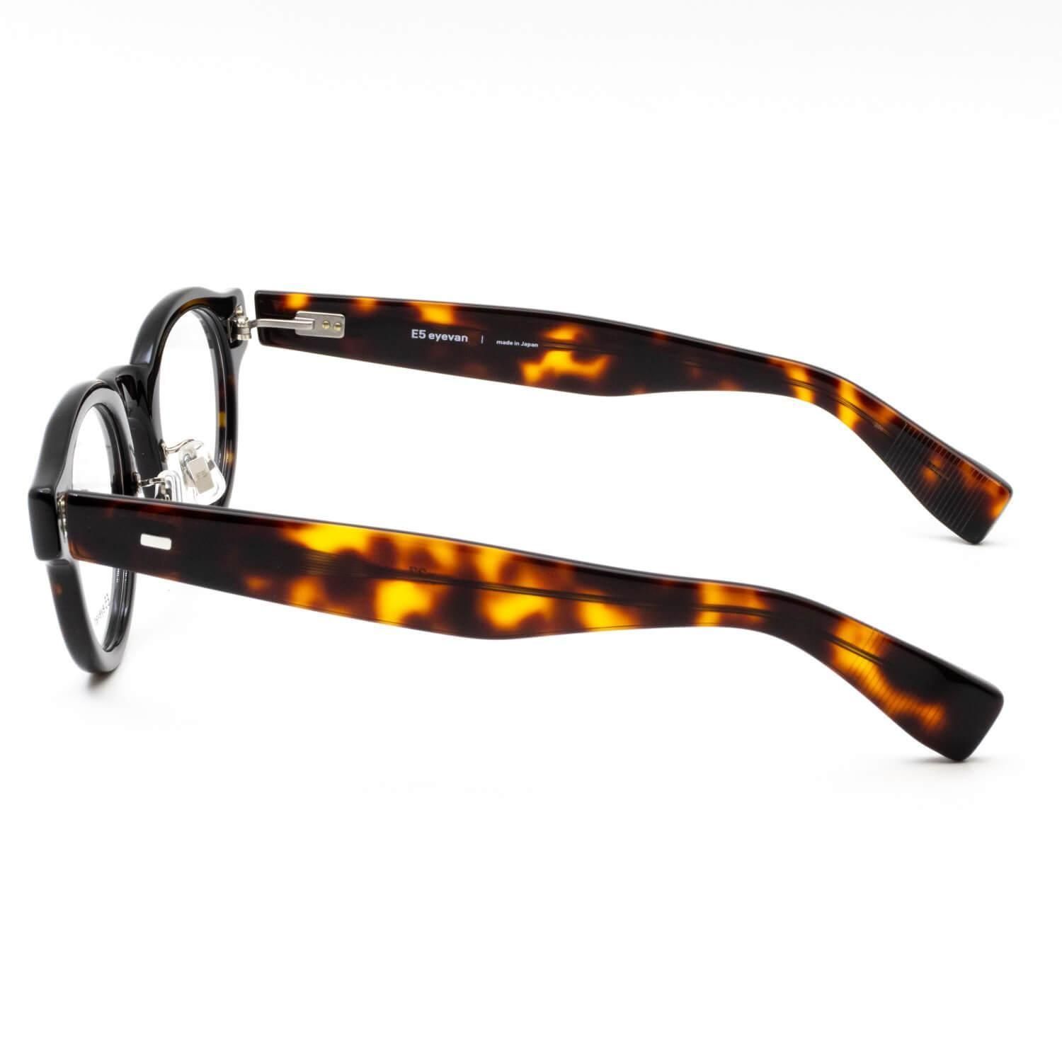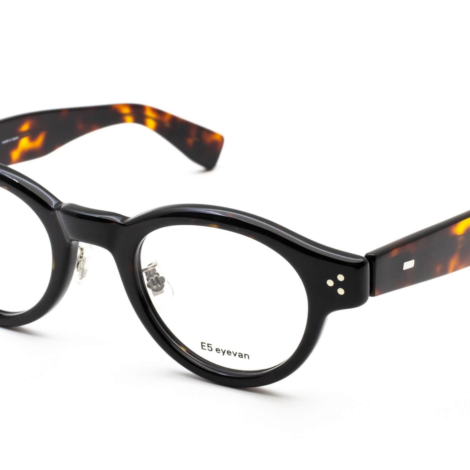 【p27】モデルは、アメリカンヴィンテージを思わせるボストン型のデザイン。 存在感のあるフレームながら、驚くほど軽く、顔に自然と馴染むフィット感を実現しています。フロントには、高密度で変形しにくく、汗や皮脂の影響を受けにくい特殊素材「Highcount acetate(ハイカウントアセテート)」を採用。経年変化にも強く、美しさが長く続くのが魅力です。 E5の特徴でもあるL字型の丁番は、快適な掛け心地と調整のしやすさを追求して生まれた独自構造で、日常的に使いやすい設計になっています。 今回のモデルでは、天地幅のある極太テンプルに合わせて新たにフロント丁番も開発し、3PINでしっかり固定することで強度をさらに向上させました。