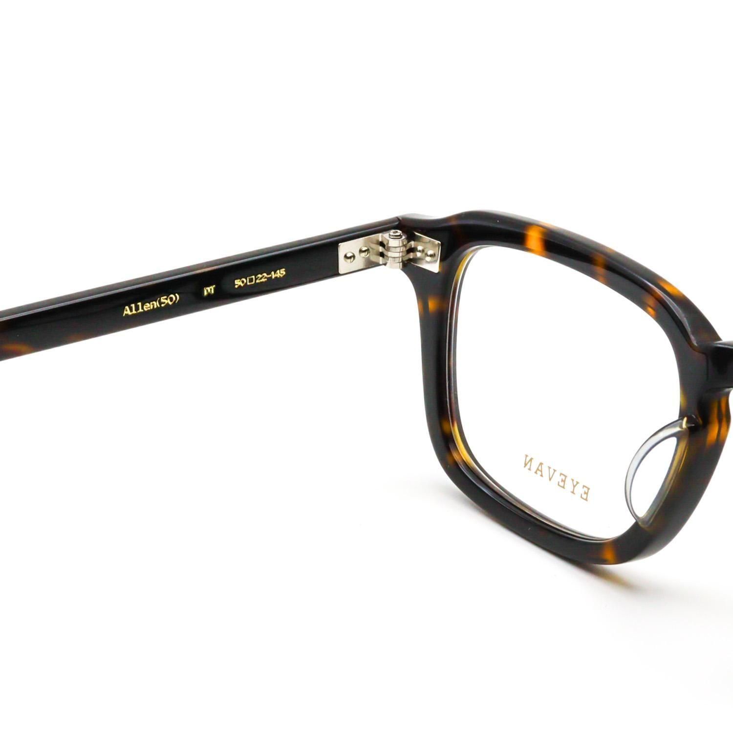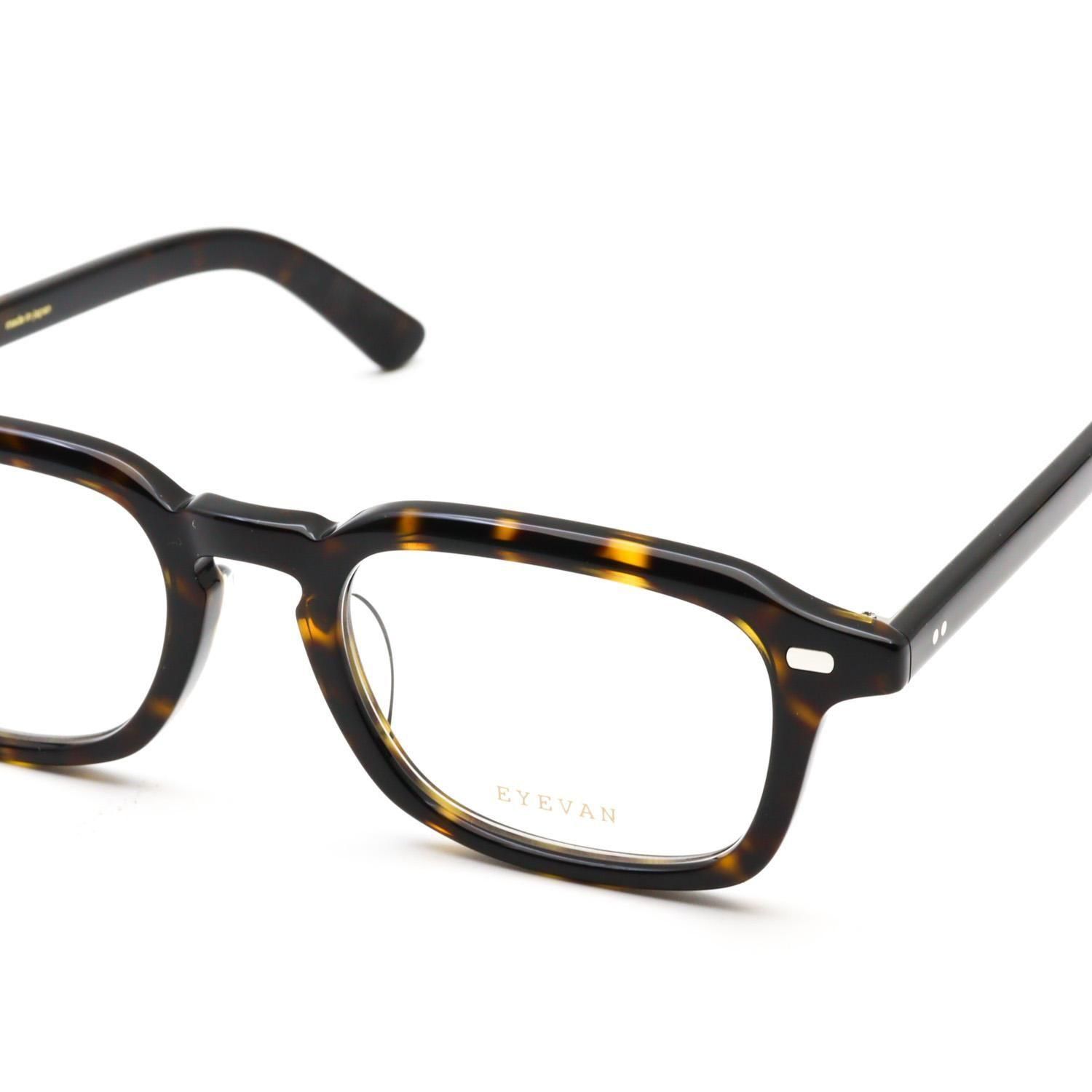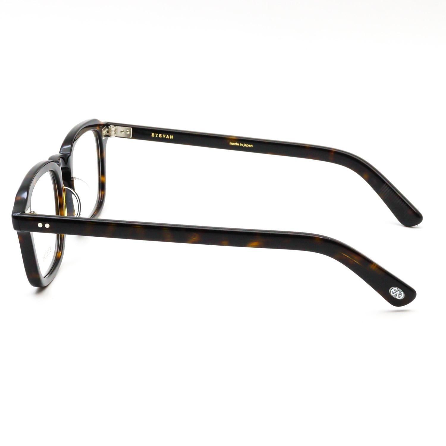 横に長いフロントシェイプに、ブリティッシュヴィンテージで見られる細長いレクタングル(長方形)の要素をほどよくミックス。ヨロイにはサンプラチナ製の飾り丁番をあしらい、全体をシンプルかつ上質に仕上げています。クラシックな形にストリートの雰囲気をさりげなく掛け合わせるという、EYEVAN らしいデザイン手法が光る一本です。