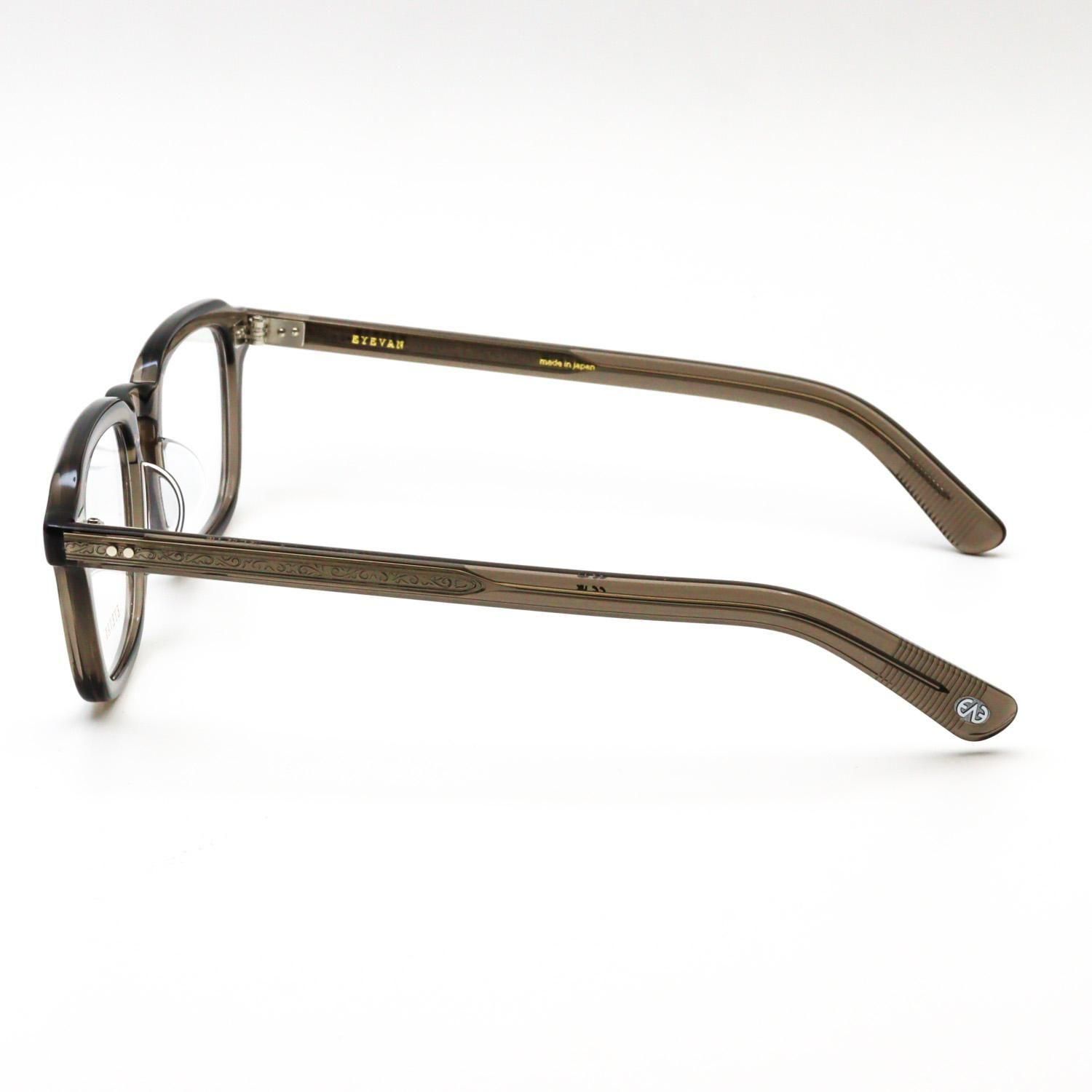 横に長いフロントシェイプに、ブリティッシュヴィンテージで見られる細長いレクタングル(長方形)の要素をほどよくミックス。ヨロイにはサンプラチナ製の飾り丁番をあしらい、全体をシンプルかつ上質に仕上げています。クラシックな形にストリートの雰囲気をさりげなく掛け合わせるという、EYEVAN らしいデザイン手法が光る一本です。