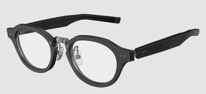 フロントの細くきれいなラインから、耳にかけるテンプルへ自然につながる形になっていて、掛けたときに顔にすっと馴染むのが特徴。