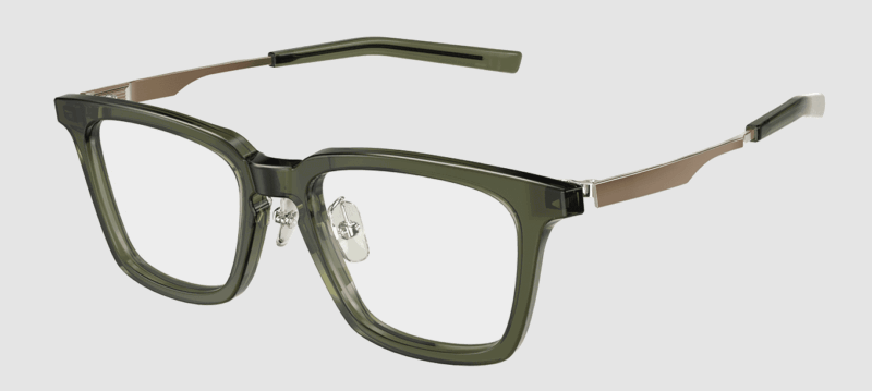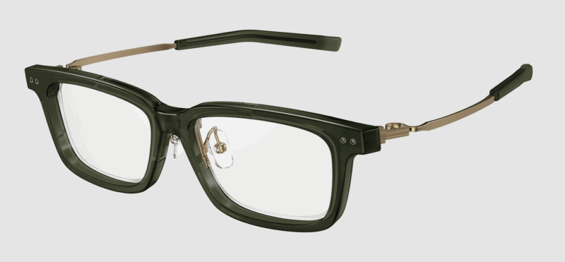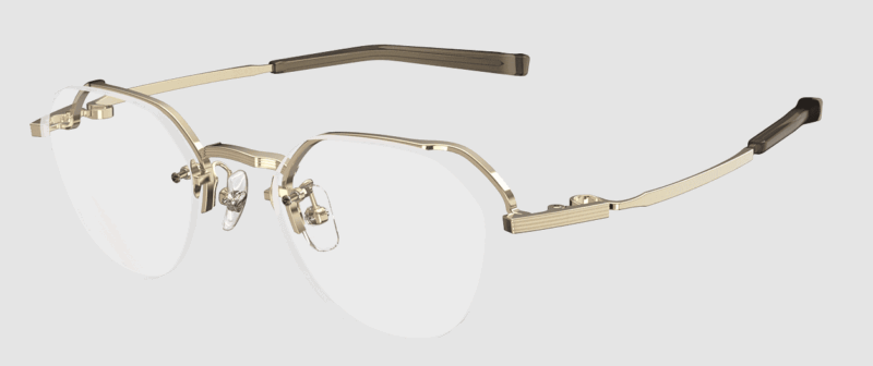 フォーナインズらしい「メタルブロウ(上部分が金属のフレーム)」を現代的にアップデートした一本で、シャープさと品の良さがほどよく調和。オン・オフどちらにも合わせやすく、長く愛用できる完成度の高いメガネです。